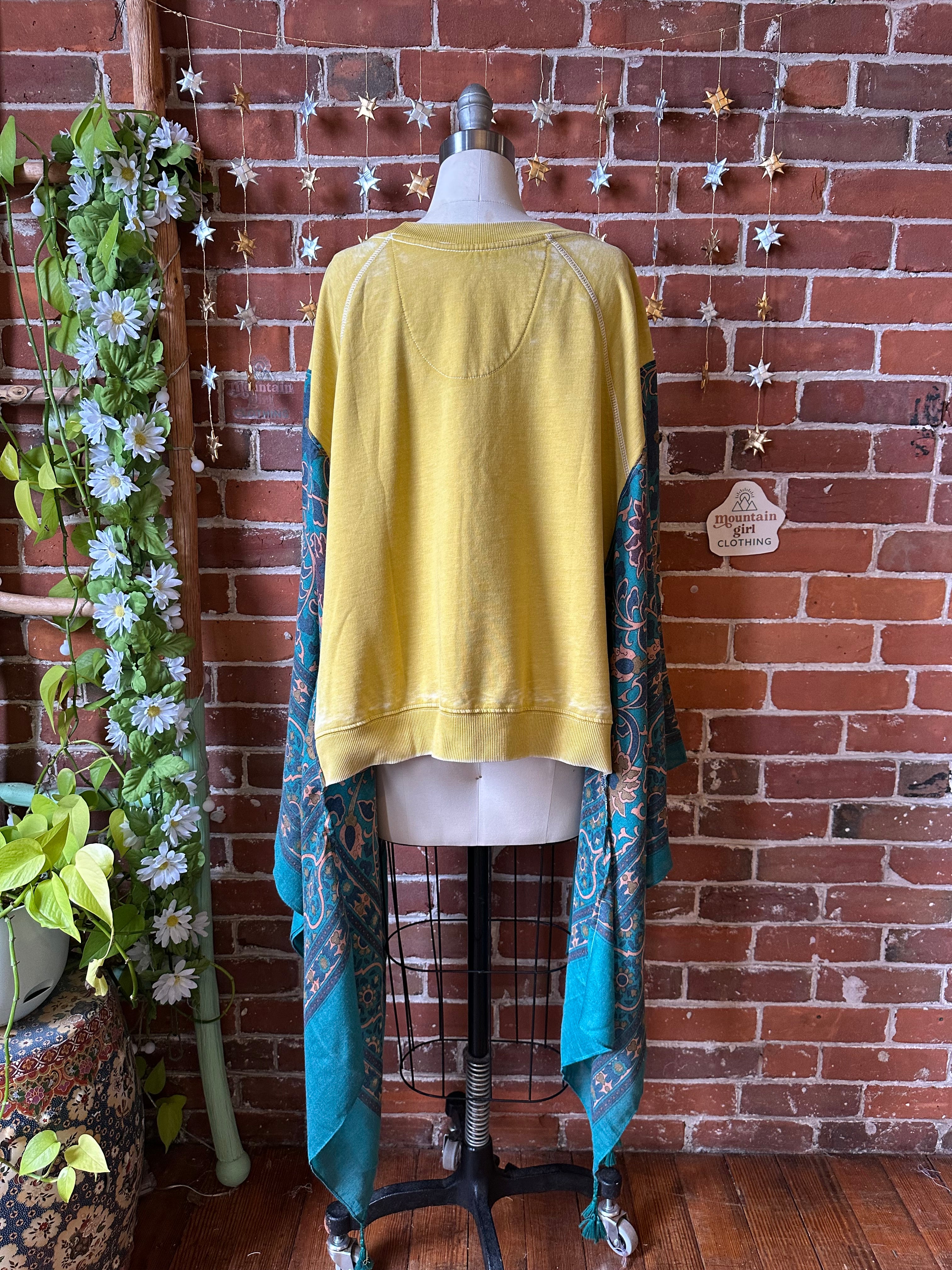 Elevate your boho wardrobe with this stunning Upcycled Poncho. Handmade with love, this flowy poncho is Designed to fit most sizes, this versatile piece is perfect for adding a touch of magic to any outfit.