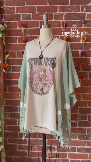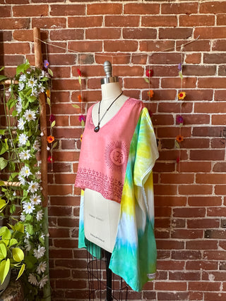 OOAK Autumn Collection - Upcycled Flower Patchwork Hi Lo Kantha Poncho Top 🌼