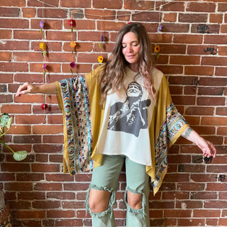 Grateful Dead Inspired Moon + Stars Celestial Tapestry Bell Sleeve Hooded Kimono