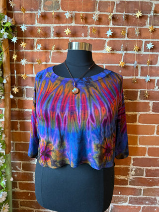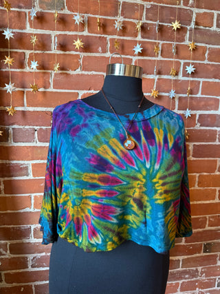 OOAK Autumn Collection - Upcycled Dippin Dots Patchwork Cropped Hi Lo Poncho Top