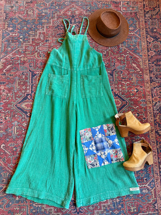 OOAK Autumn Collection- Size Medium Upcycled Patchwork Gauze Wide Leg Overalls
