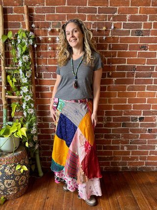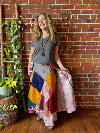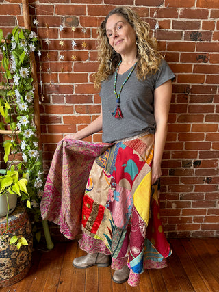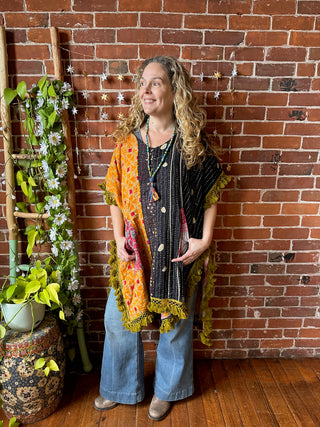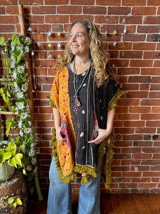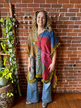 Sierra Dreams Upcycled Cotton Kantha Poncho Tunic Top with Pockets - Fair Trade Made