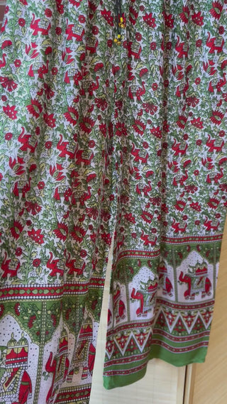 Flowy Block Print Elephant Lounge Pants - Green + Red