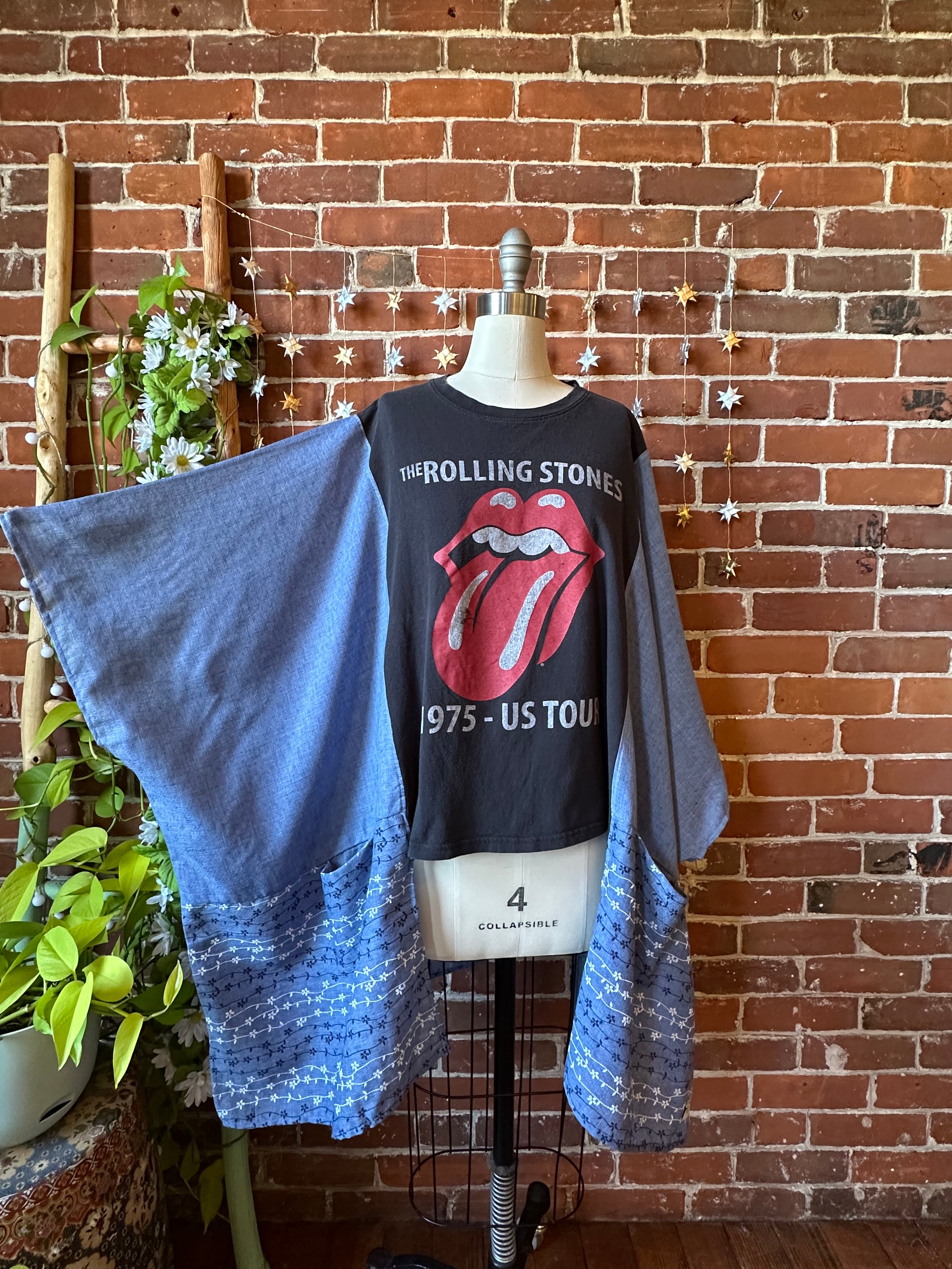 Upcycled tee and flowy fabric on the sides, with armholes and pockets!