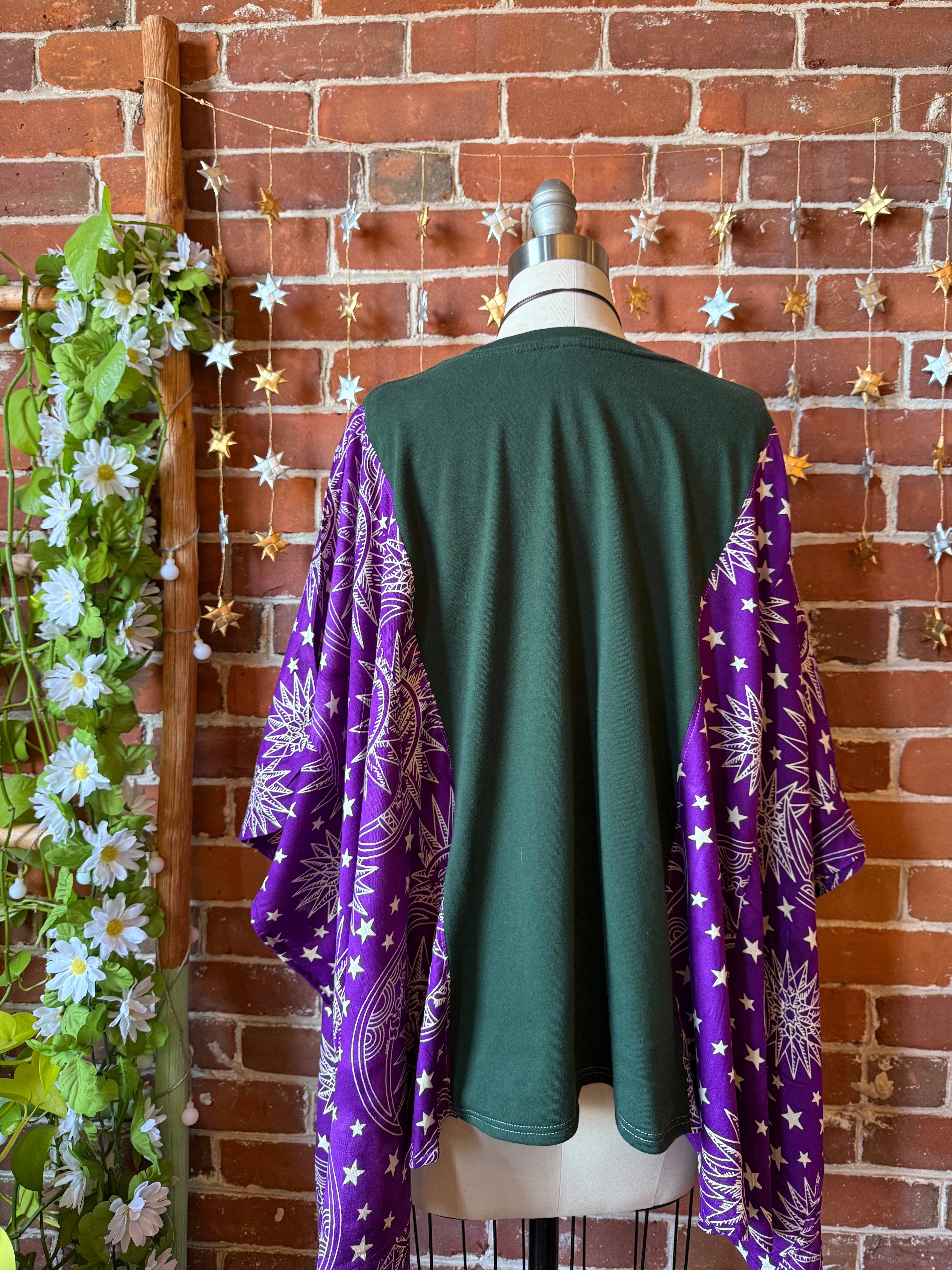 Upcycled top and flowy fabric on the sides