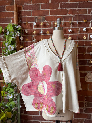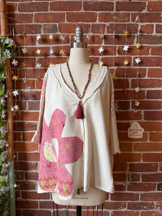 OOAK Winter Collection - Upcycled Kantha Peace Sign Patch Patchwork Poncho Style Top 🌼