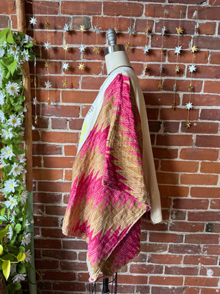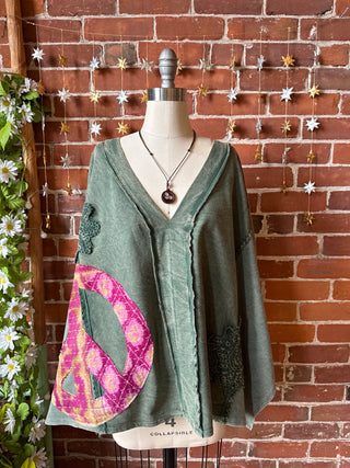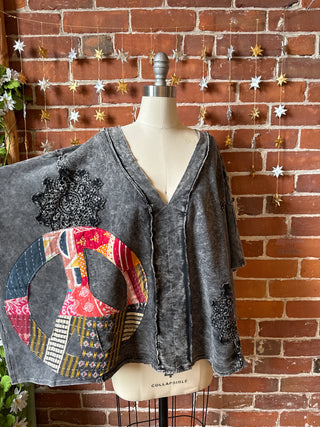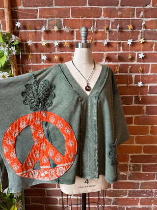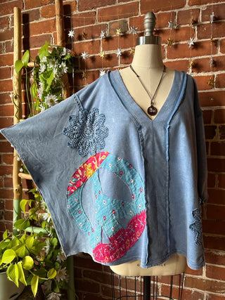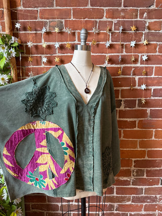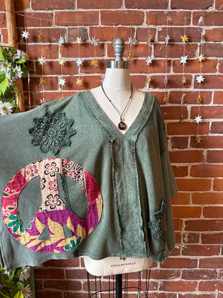 OOAK Winter Collection - Upcycled Kantha Peace Sign Patchwork Poncho Style Top 🌼