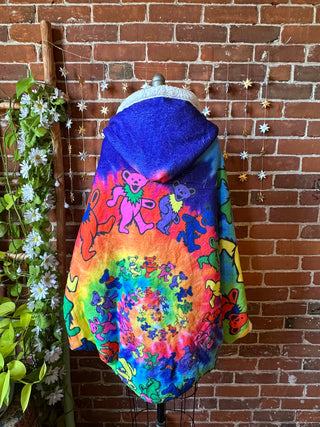 OOAK Autumn Collection- Upcycled Fleetwood Mac Inspired Kantha Poncho Tie Dye Hoodie
