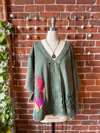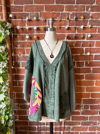 OOAK Winter Collection - Upcycled Kantha Flower Patchwork Poncho Style Top 🌼