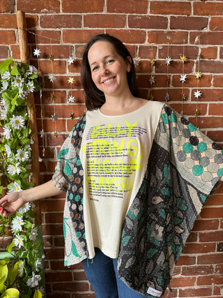 OOAK Winter Collection- Upcycled Billy Strings Highway Prayers Lyrics Kantha Poncho Top
