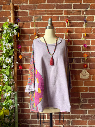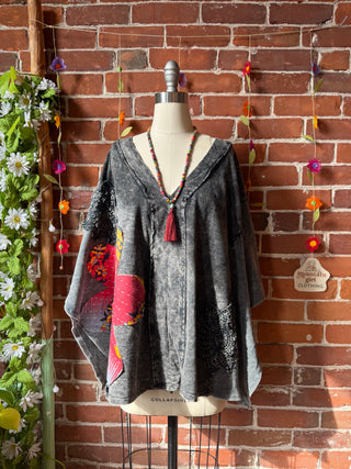 OOAK Winter Collection- Upcycled Silk Patchwork Tie Dye Reba Inspired Hi Lo Poncho Top
