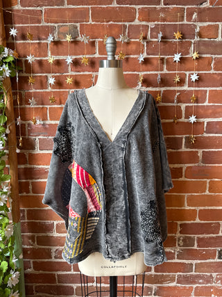 OOAK Winter Collection- Upcycled Stevie Silver Springs Inspired Hi Lo Kantha Poncho Top