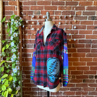 OOAK Autumn Collection - Size XL Upcycled Grateful Dead Inspired Plaid Hybrid Top