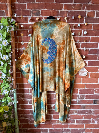 OOAK Winter Collection- Upcycled Silk Patchwork Tie Dye Willie Nelson Inspired Hi Lo Poncho Top