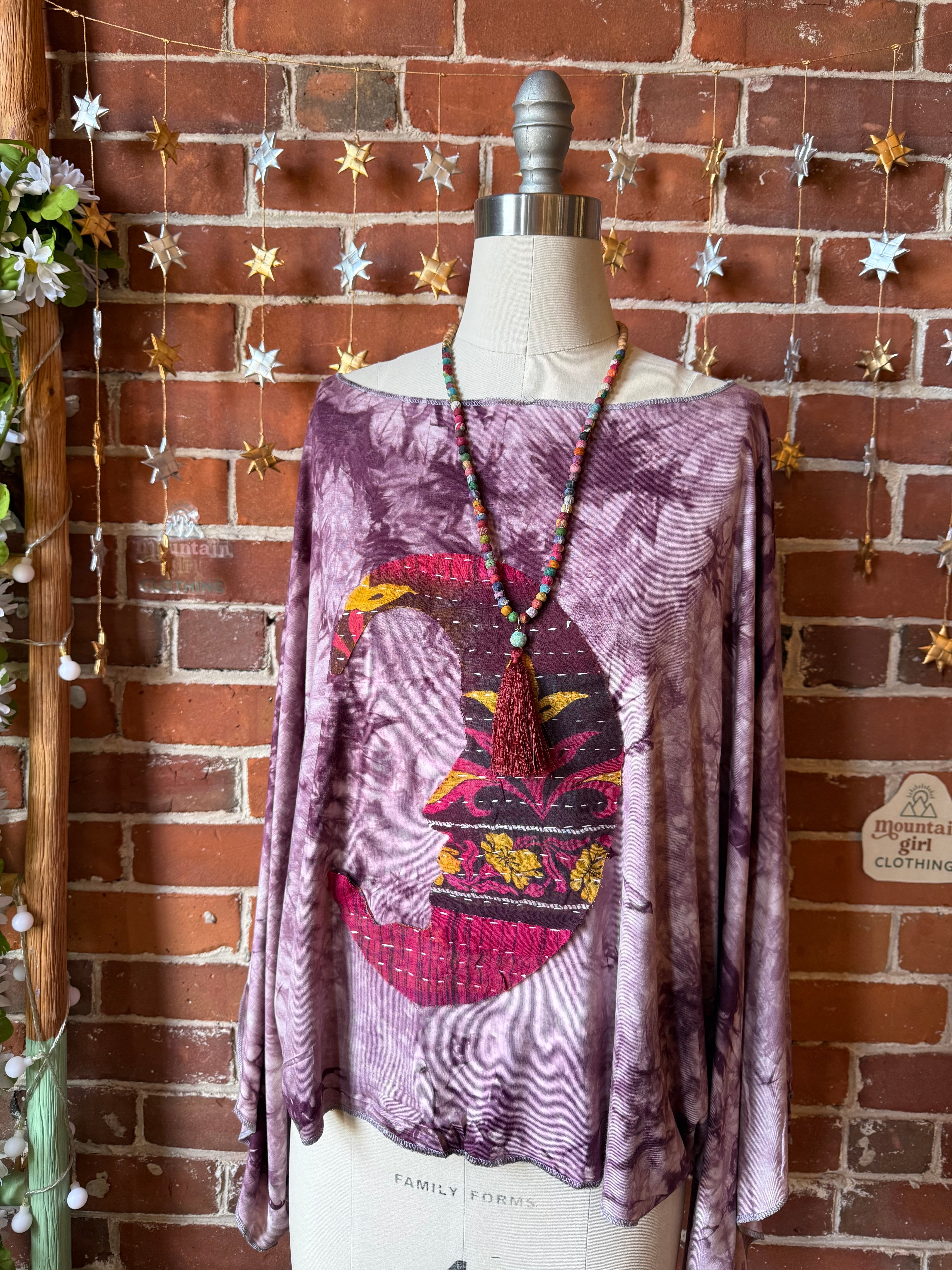 One of a kind kantha crescent moon on the front.