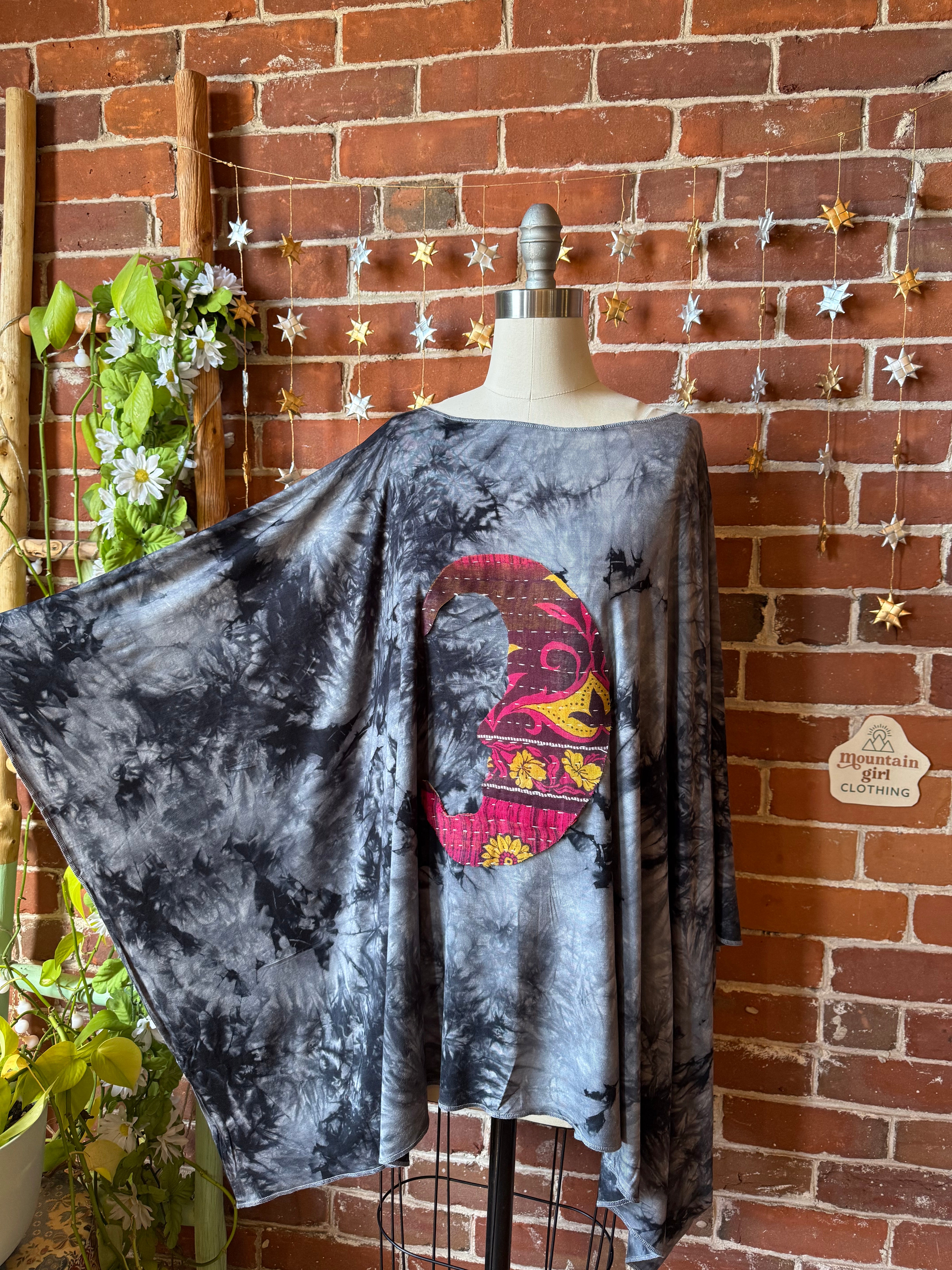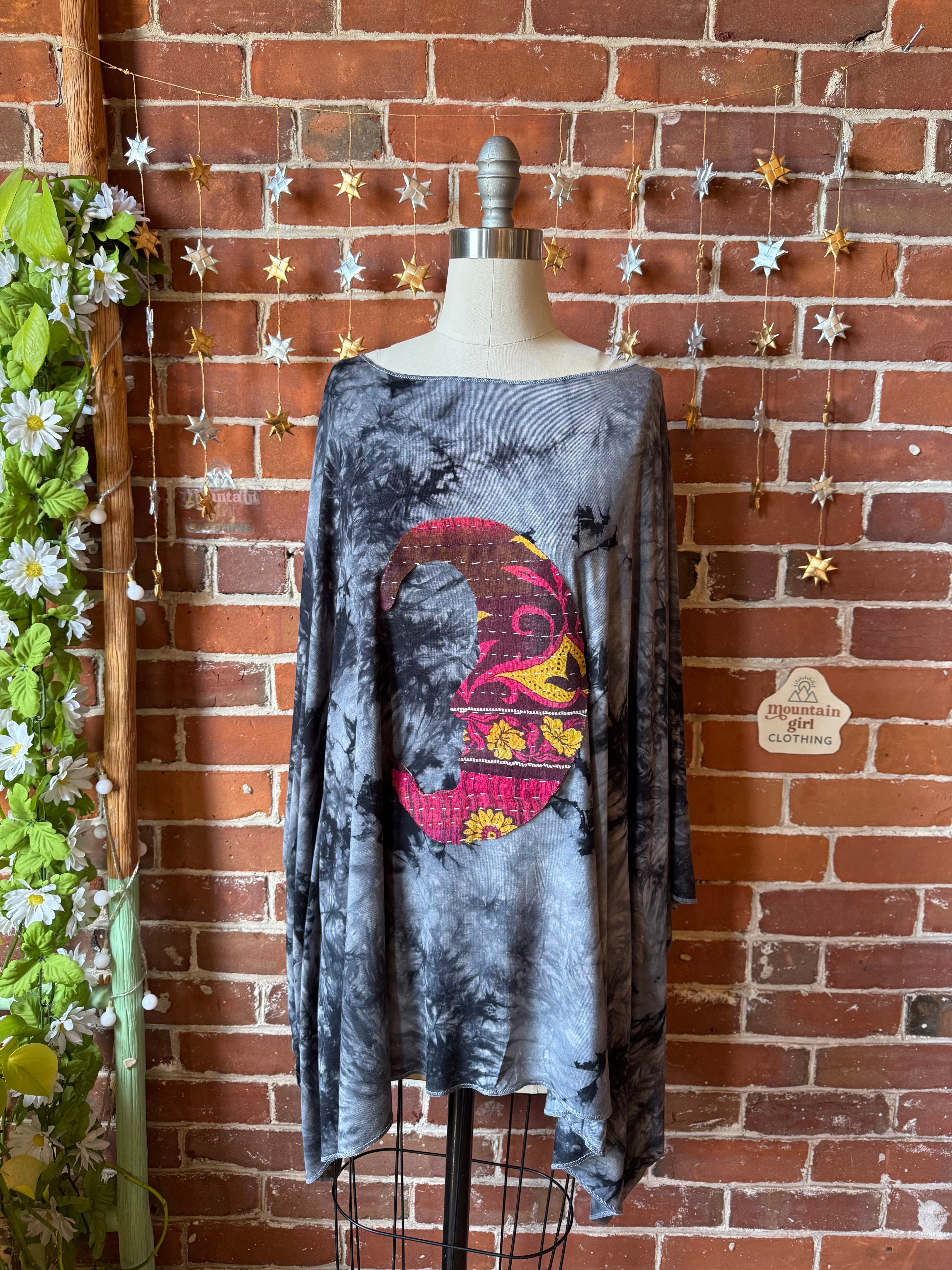 One of a kind kantha crescent moon on the front.