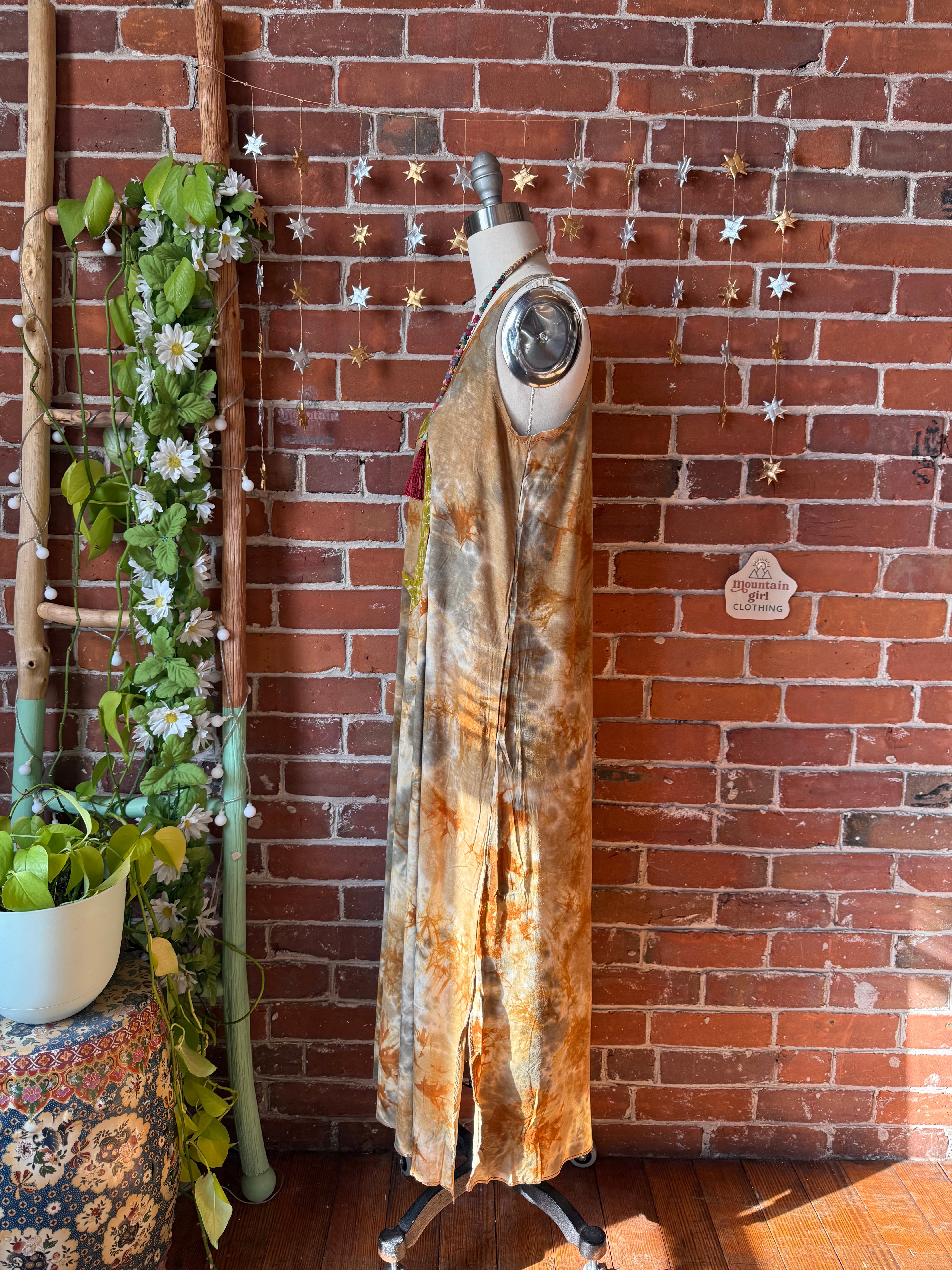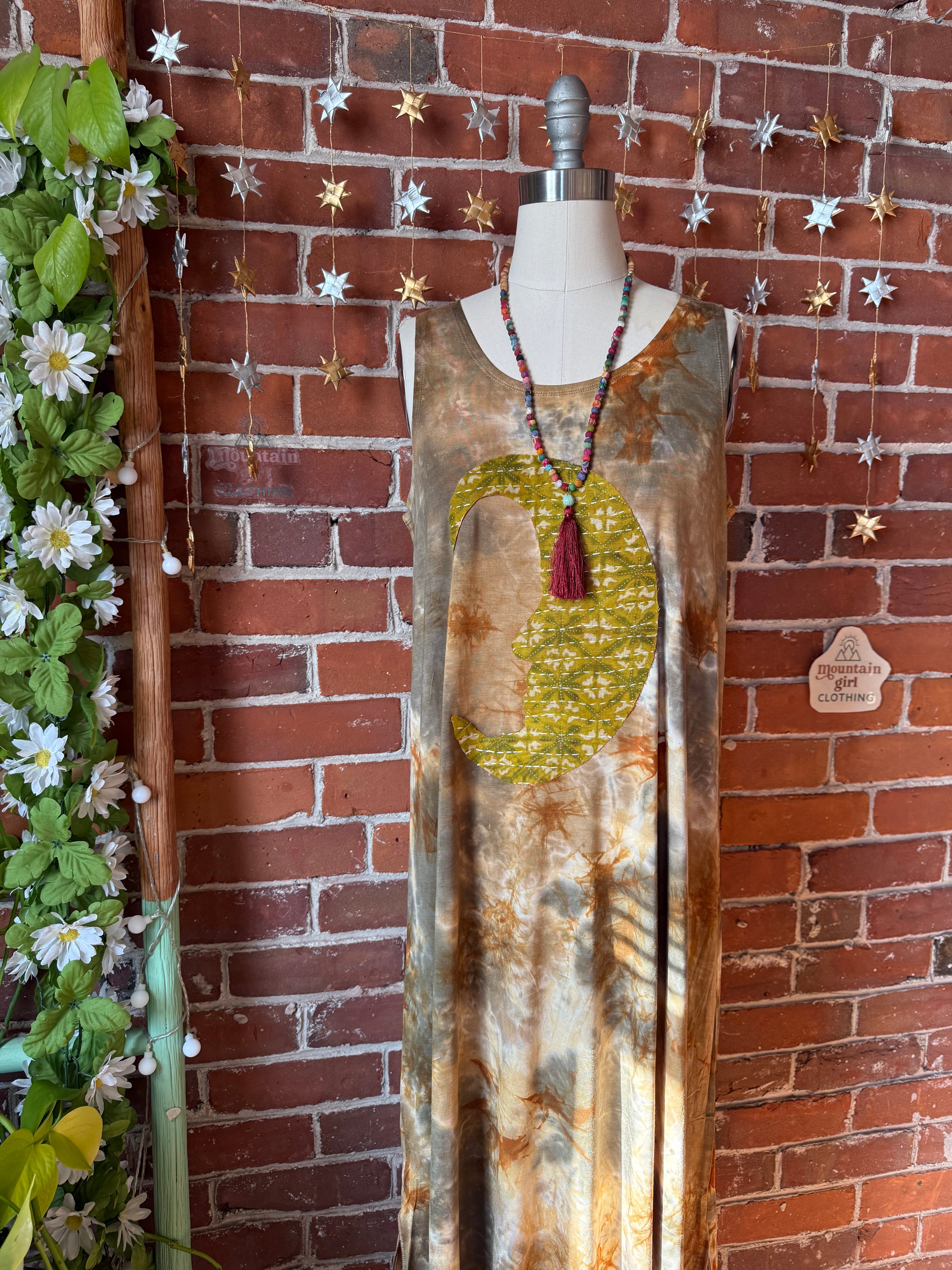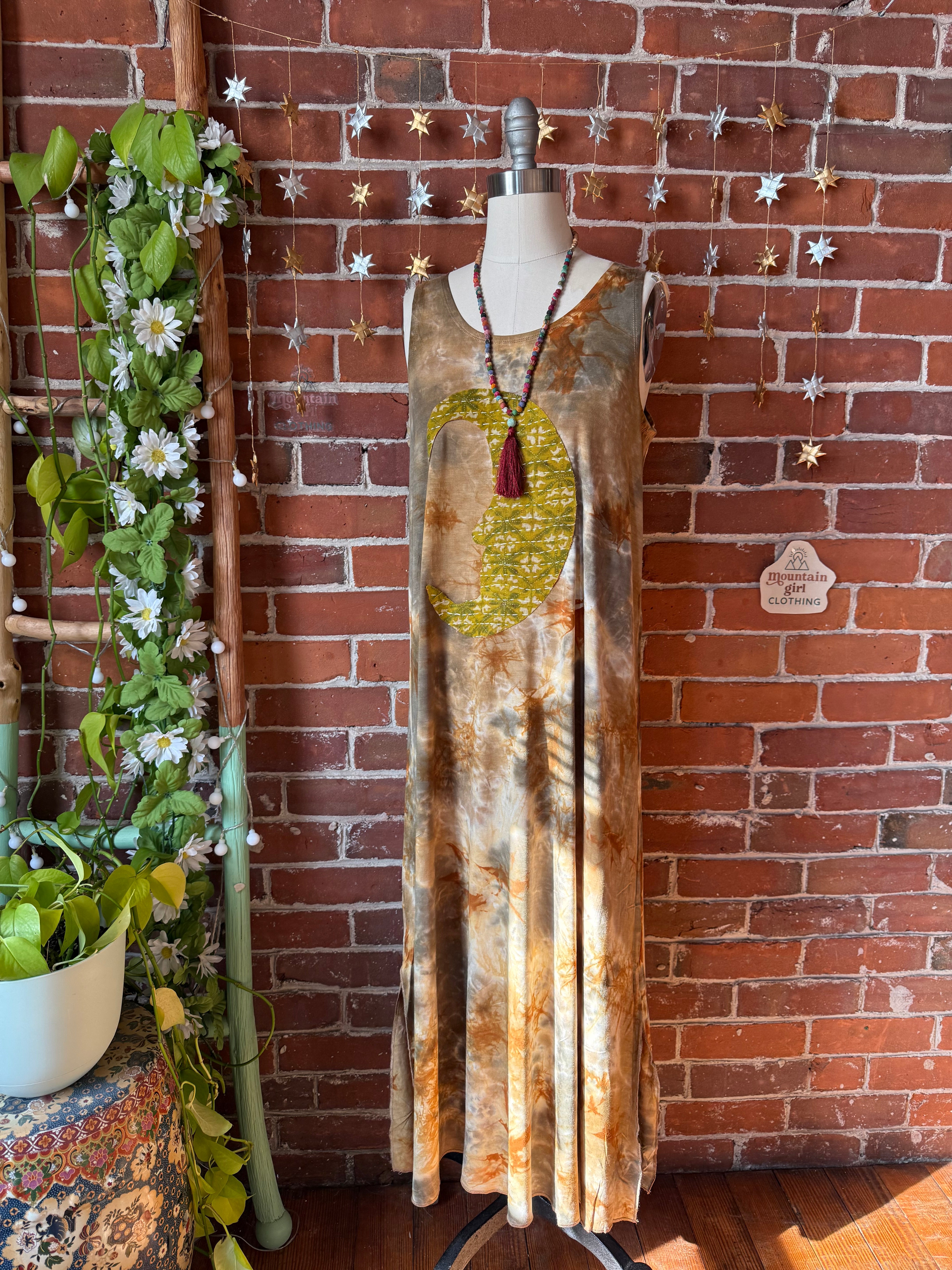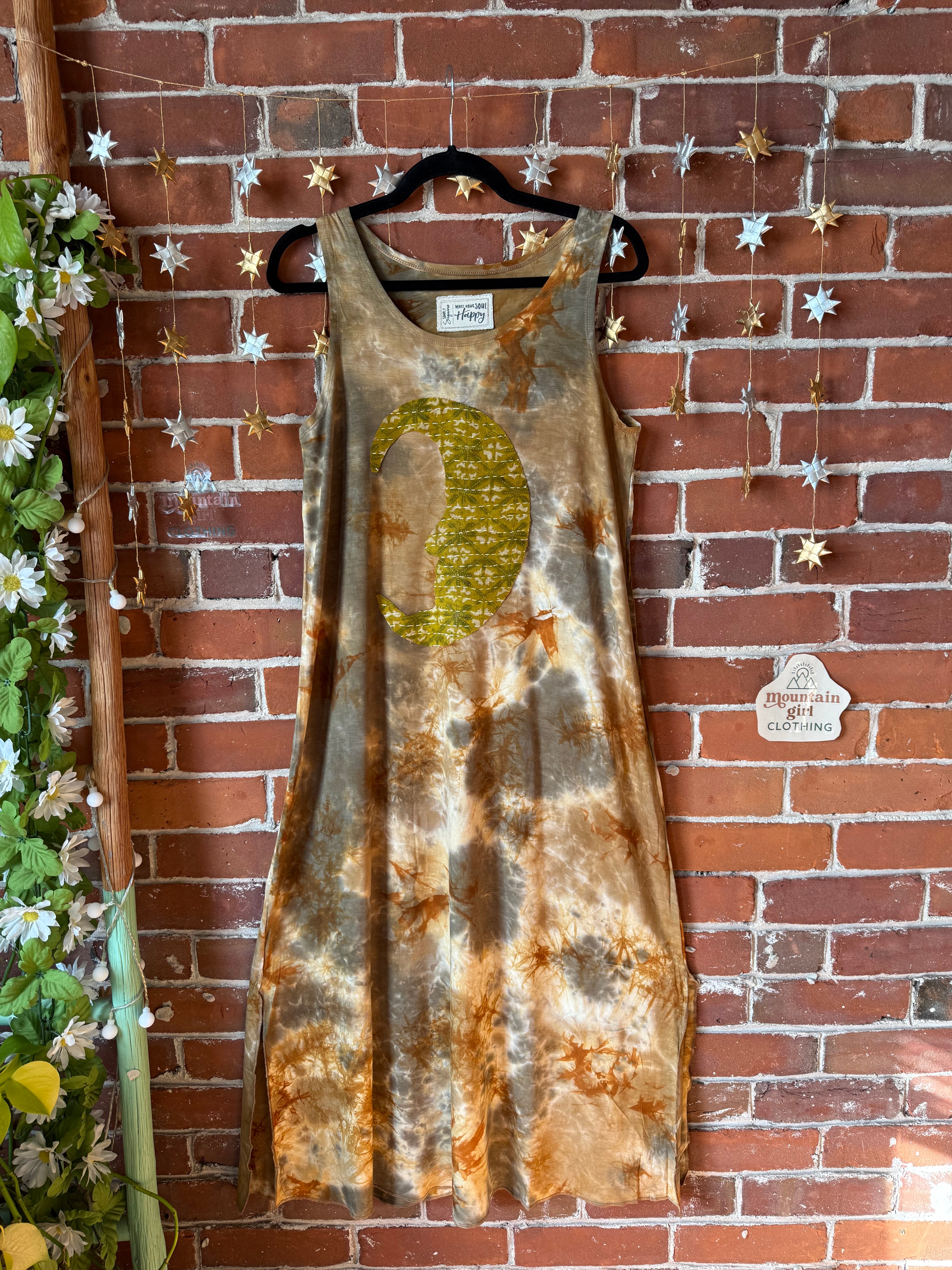 Feel Zenful in this relaxed hand tie-dyed long tank dress, small slit up the side.