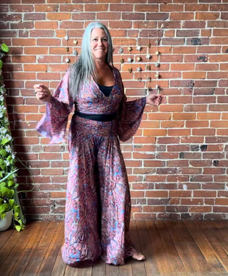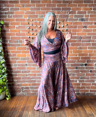 OOAK Autumn Collection- Luna Butterfly Upcycled Cropped Wide Leg Lounge Pants