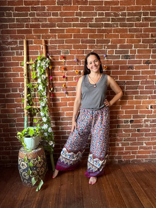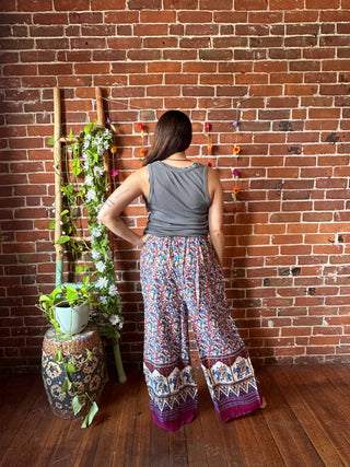 Embroidered Bohemian Spring Wide Leg Lounge Pants - Purple Haze 100% Cotton
