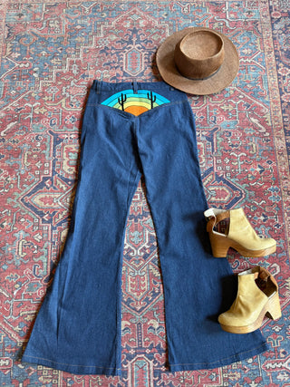 Boho Cactus Rainbow Embroidered High Waisted Bell Bottoms