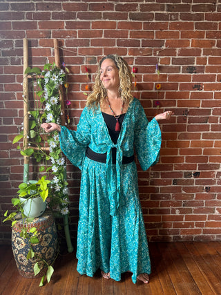 Aquarius Patchwork Flowy Wide Leg Jumpsuit Blue Teal Green
