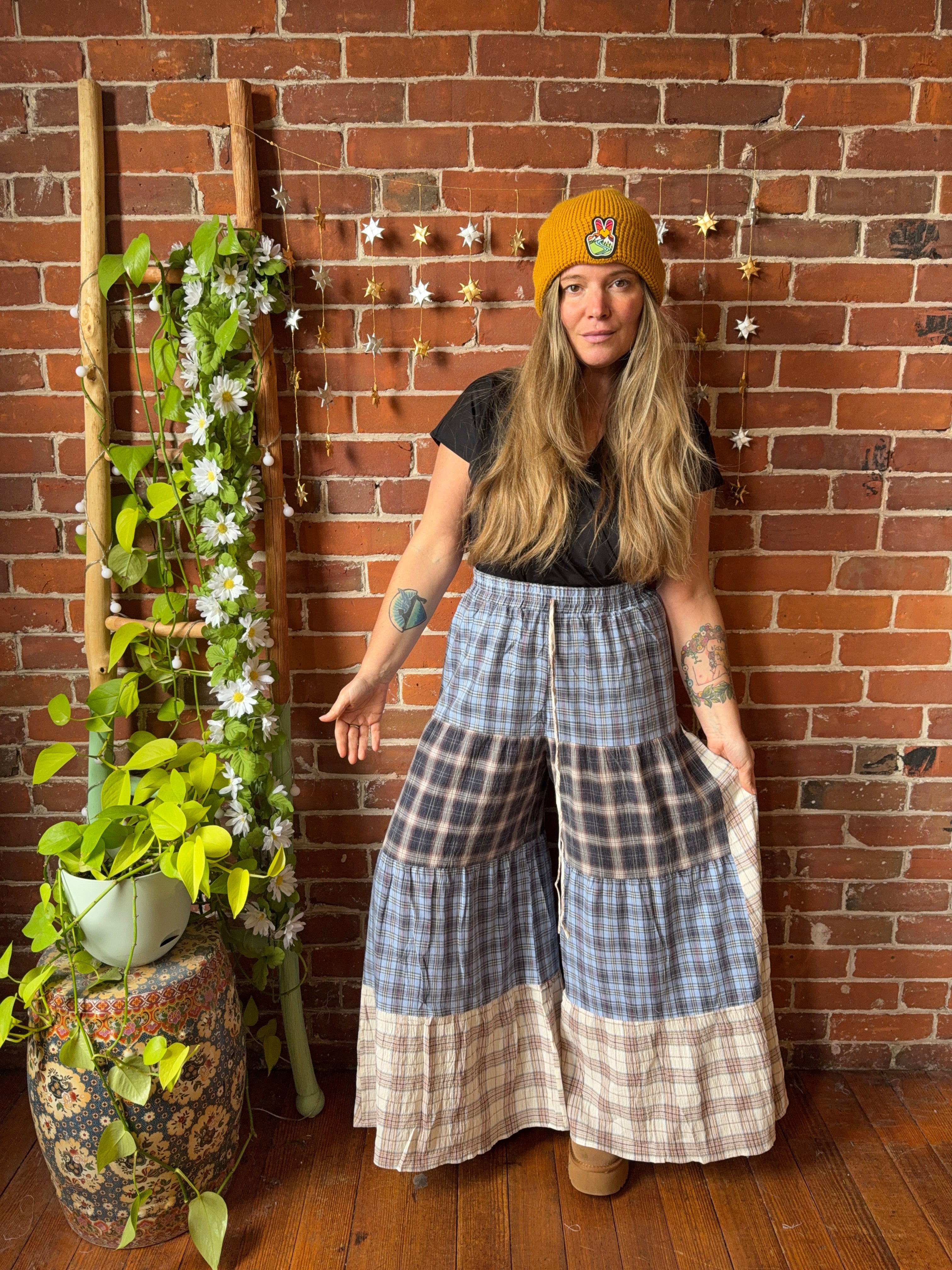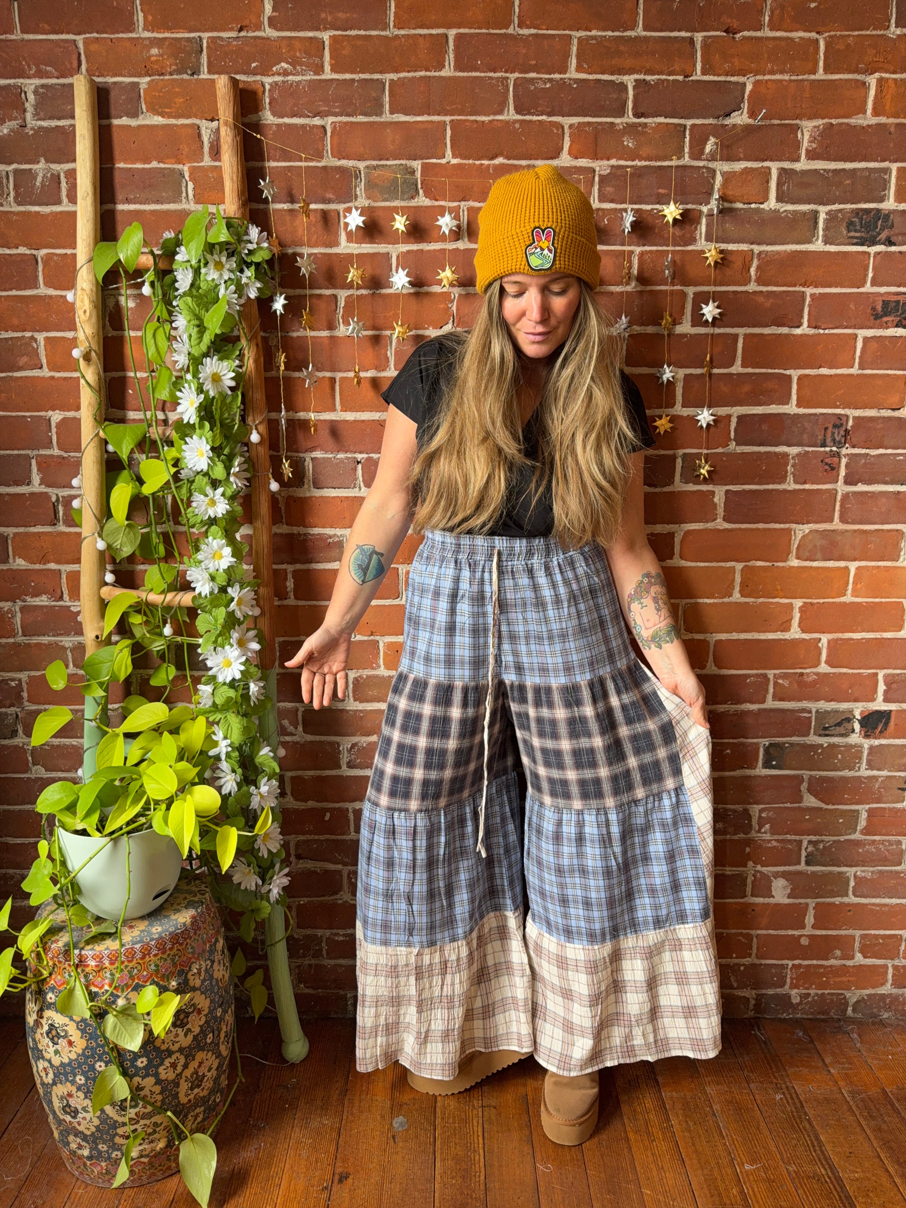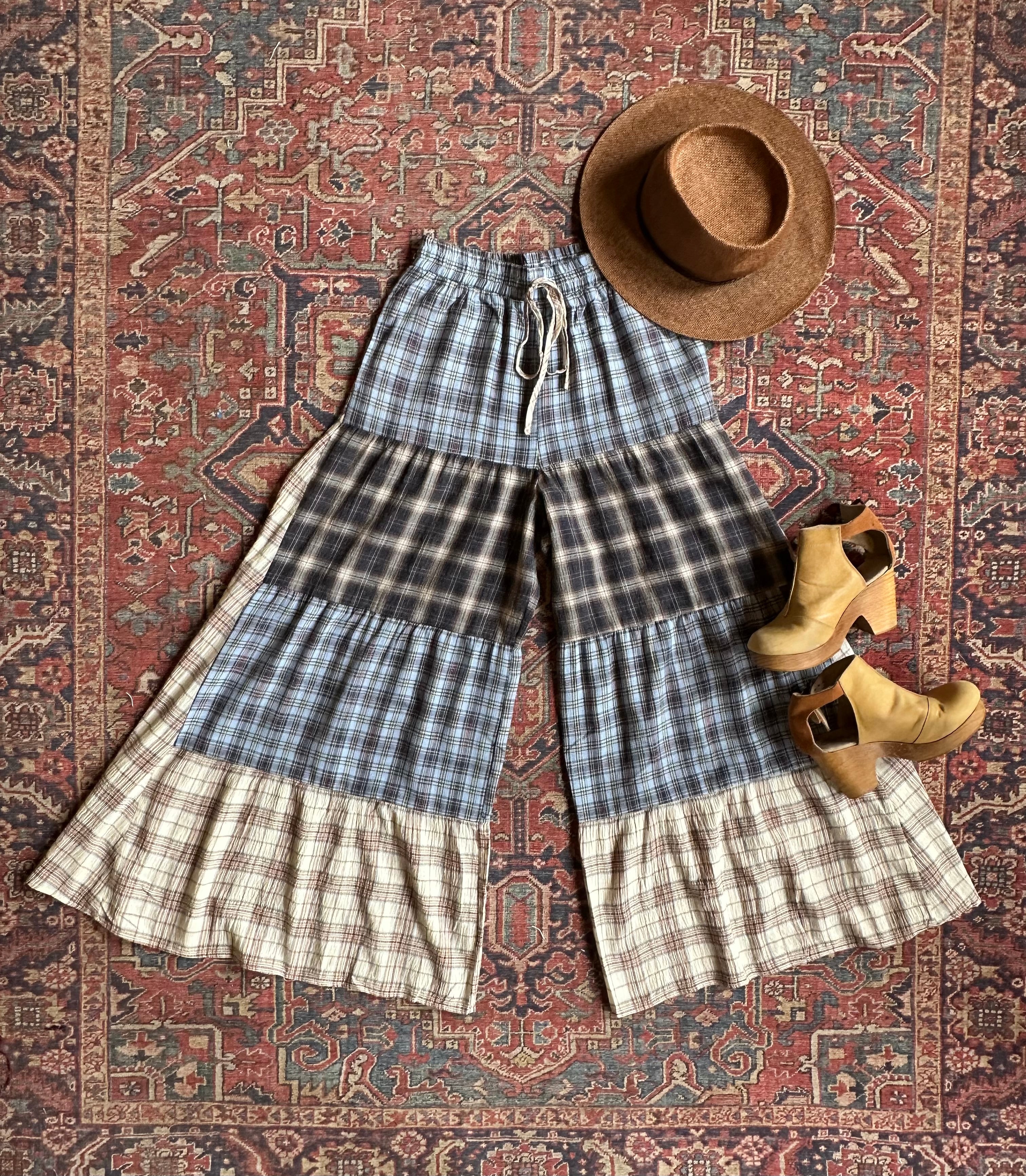 Autumn Stroll Plaid Patchwork Bohemian Wide Leg Pants