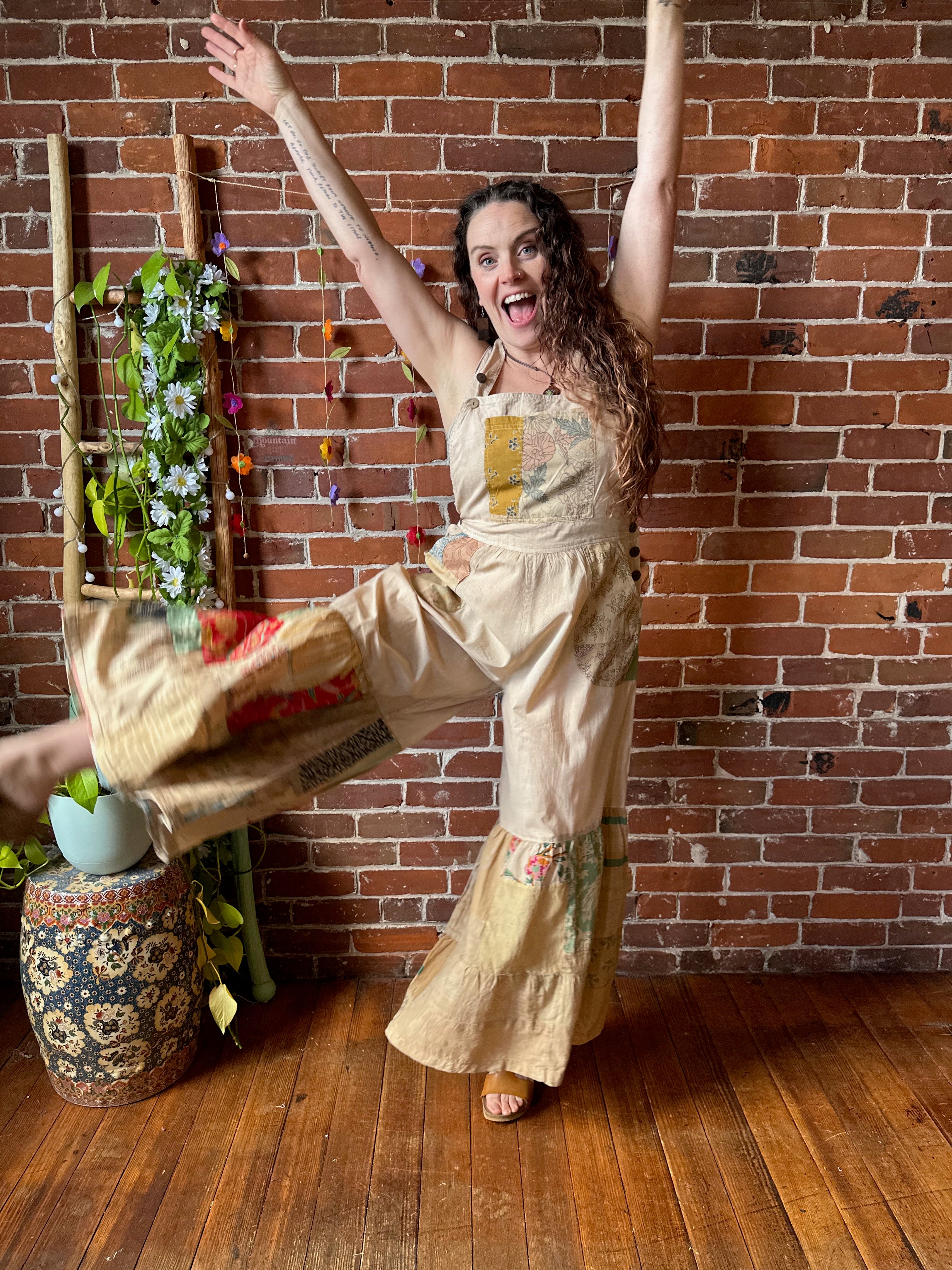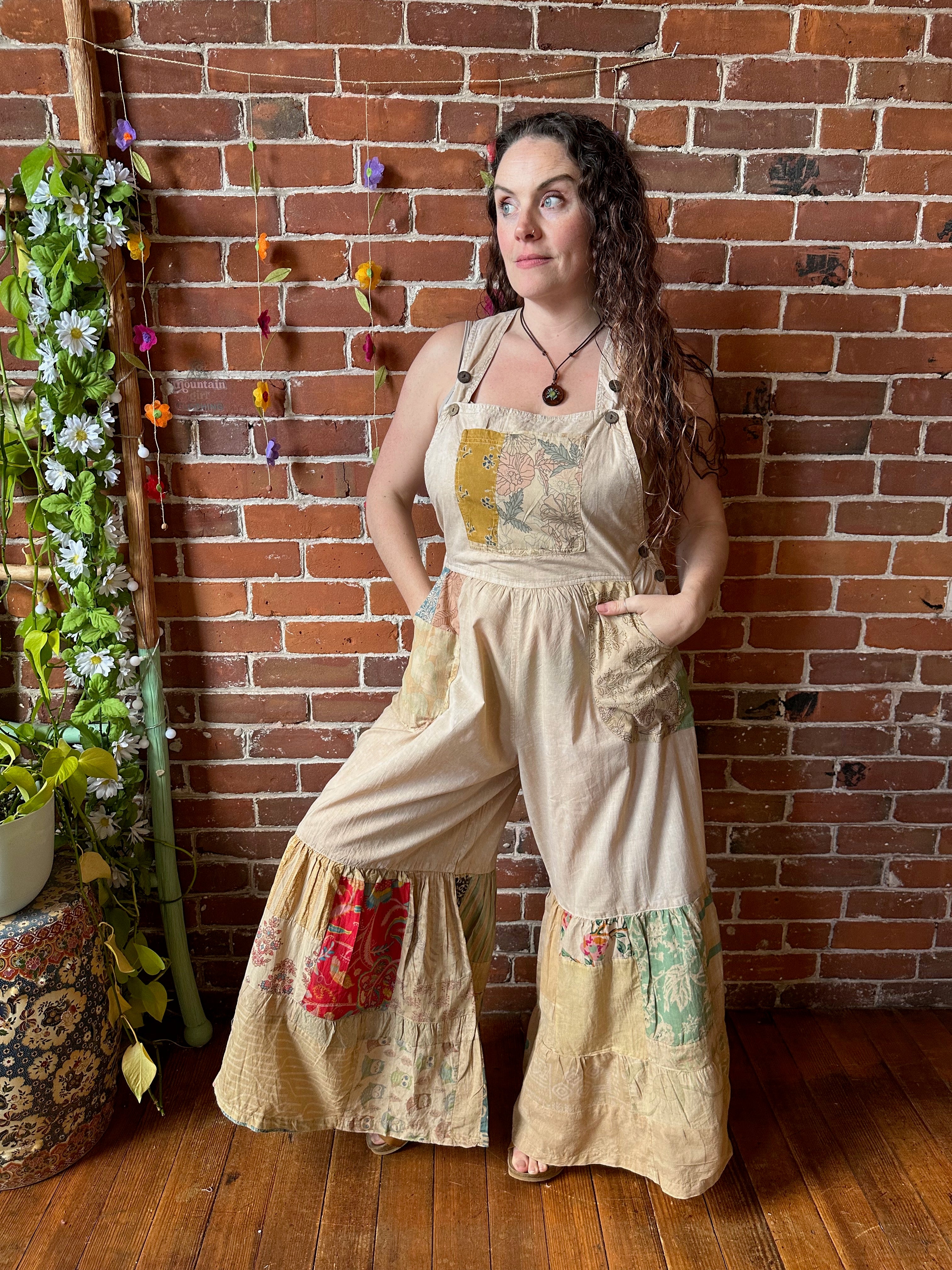 These beautiful Patchwork Overalls have a relaxed fit throughout with a tiered wide-leg design. Front button closures, classic neckline, and pockets, these cotton overalls are great for any day. This style has endless ways to wear.