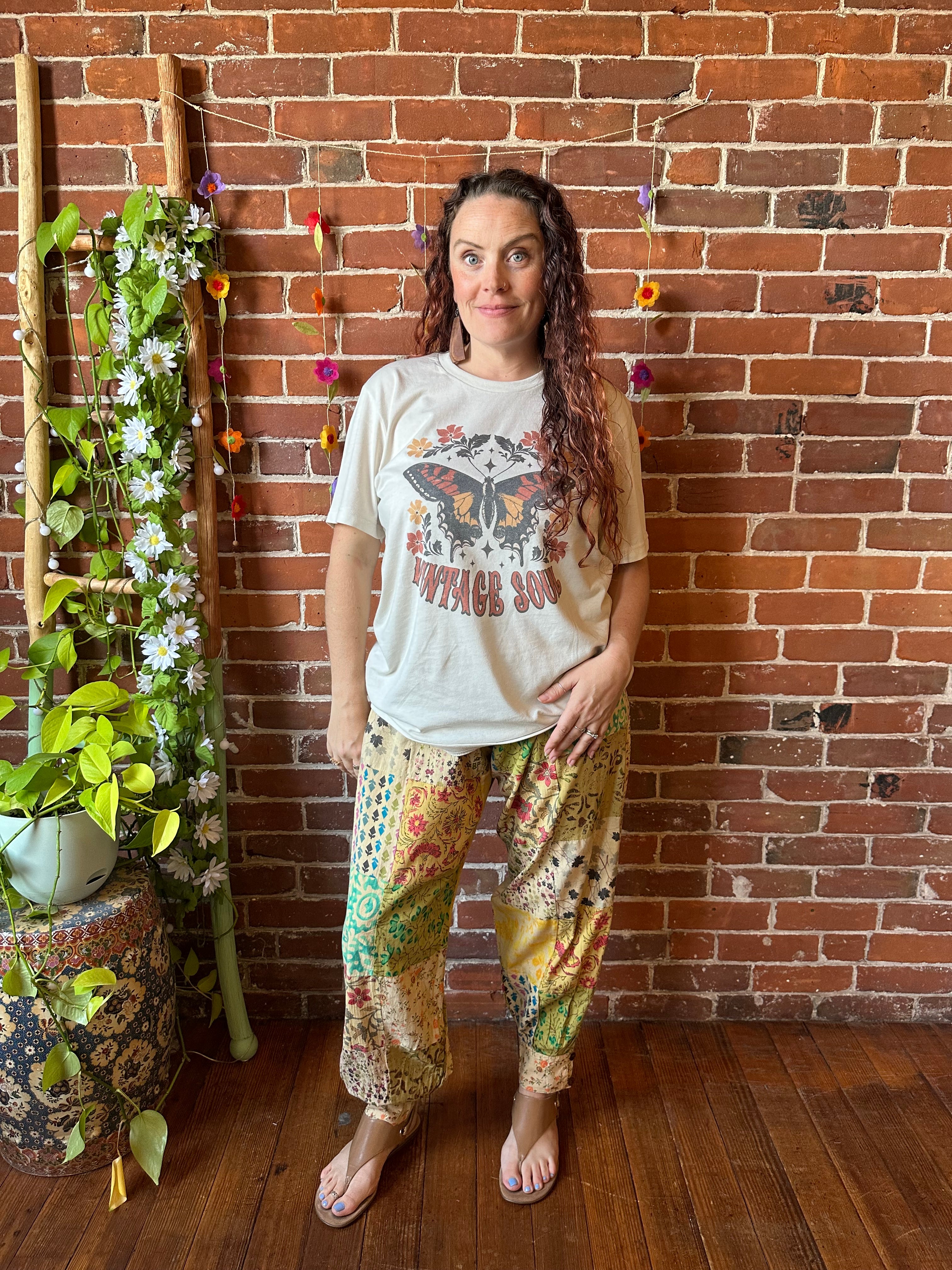 Unleash your free spirit in these fair trade patchwork Harem style Pants with the comfiest yoga waistband.