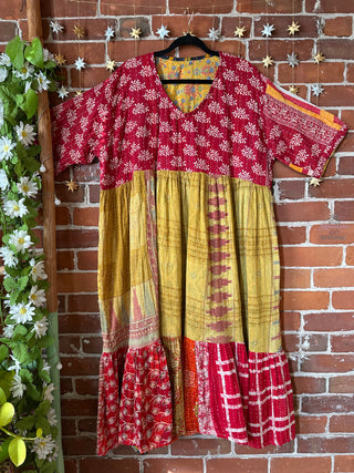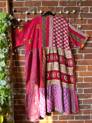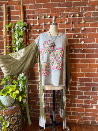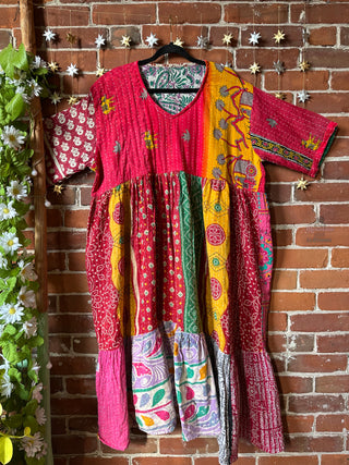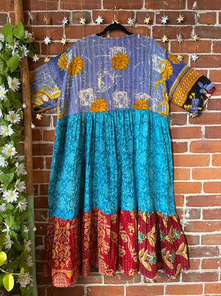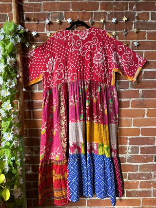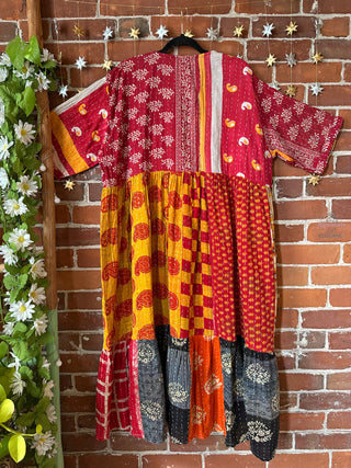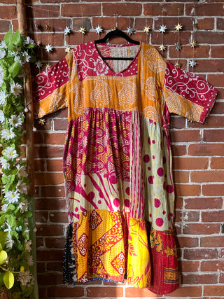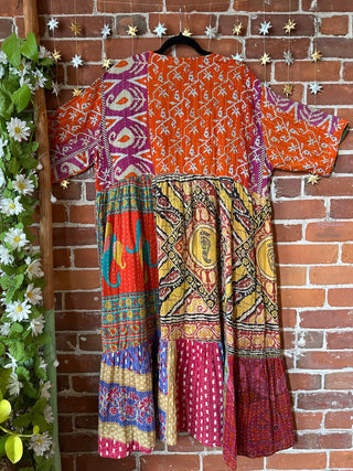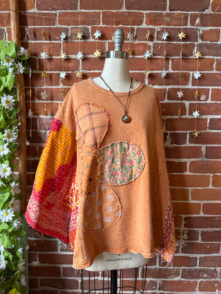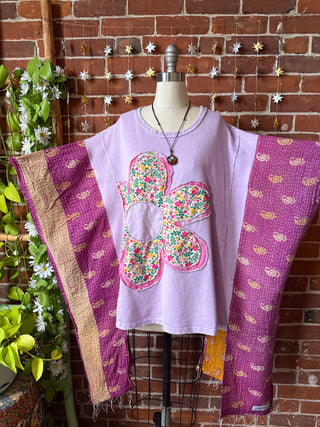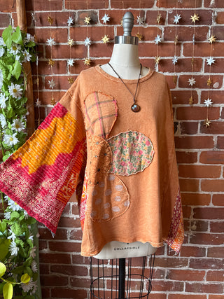 OOAK Autumn Collection - Upcycled Flower Patchwork Trapeze Style Bell Sleeve Kantha Top 🌼
