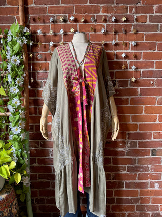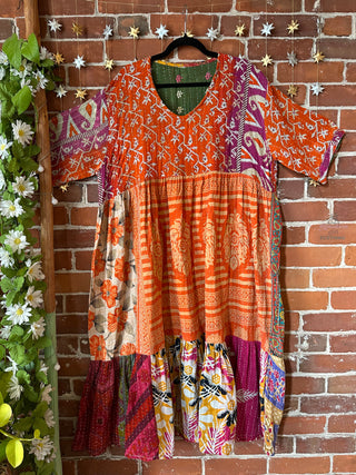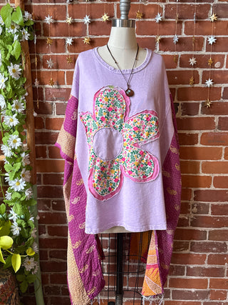 OOAK Autumn Collection - Upcycled Flower Patchwork Hi Lo Kantha Poncho Top 🌼