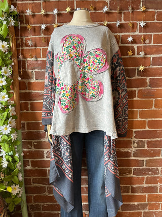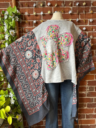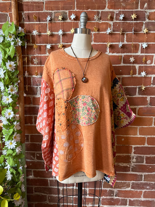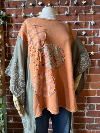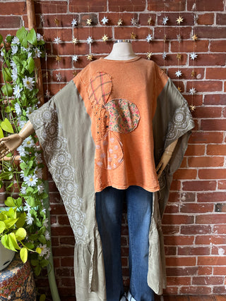 OOAK Autumn Collection - Upcycled Flower Patchwork Hi Lo Embroidered Poncho Top 🌼