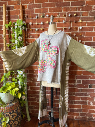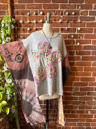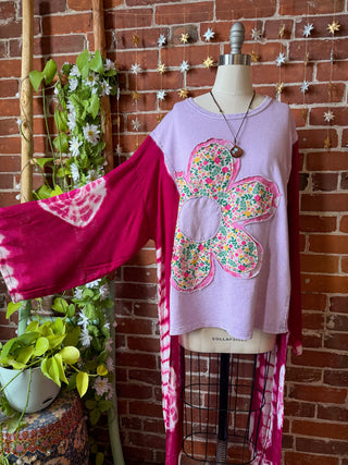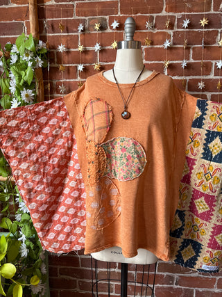OOAK Autumn Collection - Upcycled Flower Patchwork Hi Lo Tie Dye Poncho Top 🌼