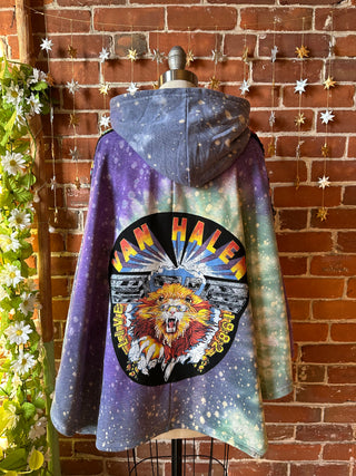 OOAK Winter Collection- Upcycled Van Halen Tie Dye Granny Square Hoodie Poncho