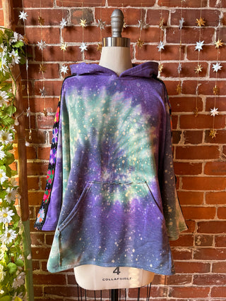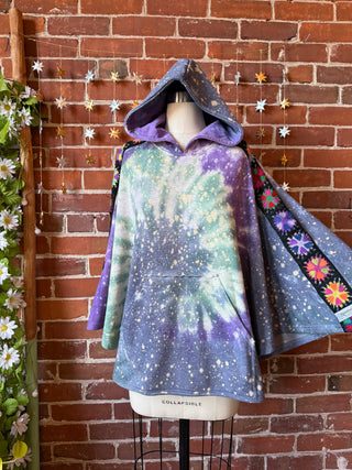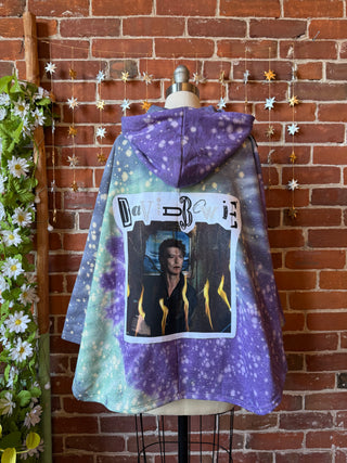 OOAK Winter Collection- Upcycled David Bowie Inspired Tie Dye Granny Square Hoodie Poncho