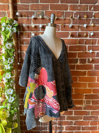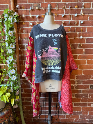 OOAK Winter Collection- Upcycled Pink Floyd Inspired Kantha Hi Lo Poncho Sweatshirt