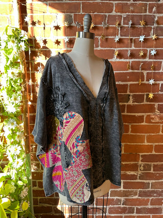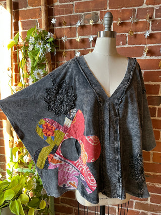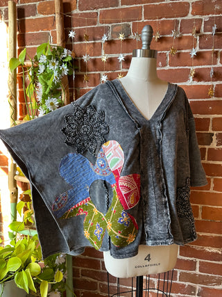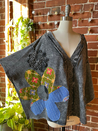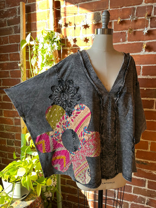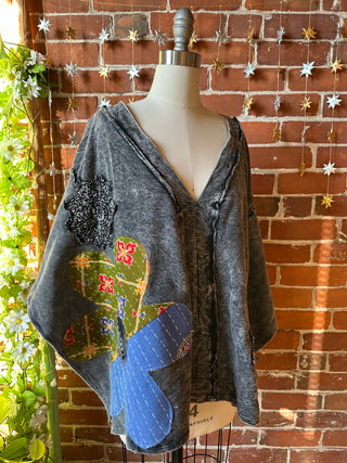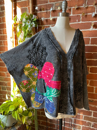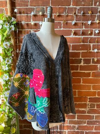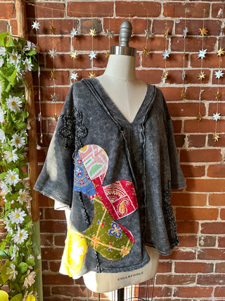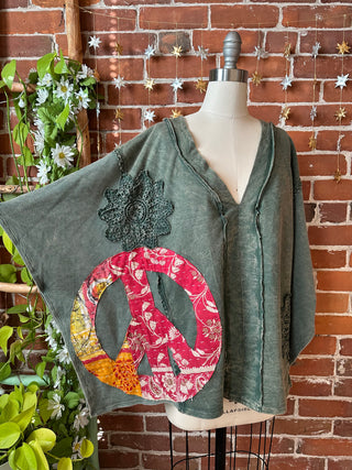 OOAK Winter Collection - Upcycled Kantha Peace Sign Patchwork Poncho Style Top 🌼