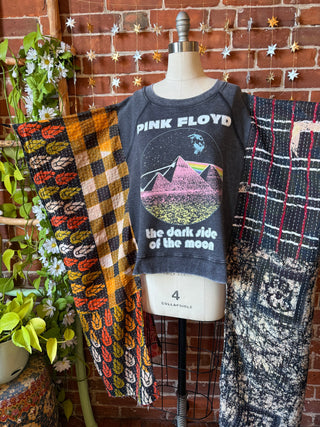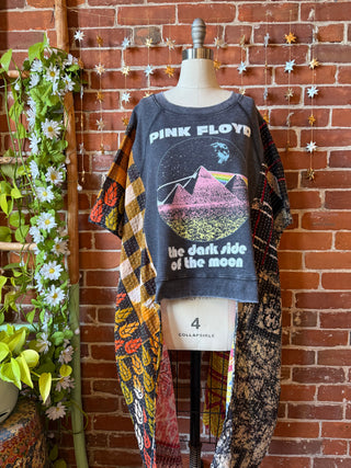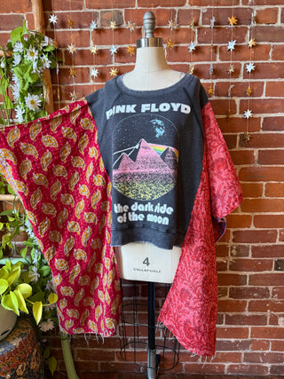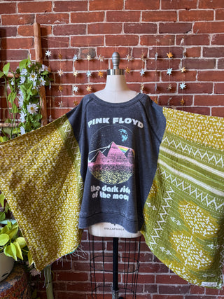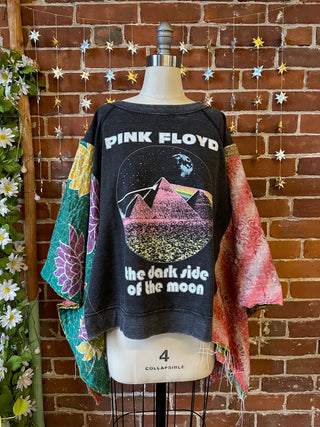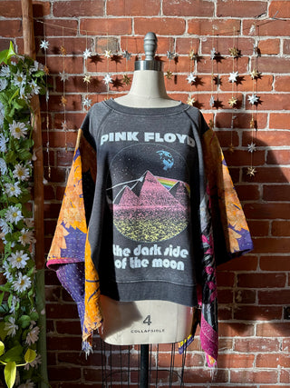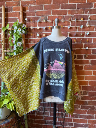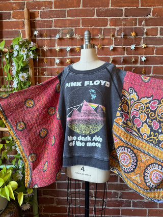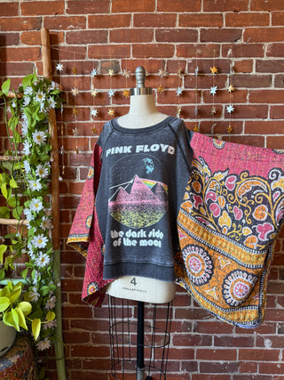 OOAK Winter Collection- Upcycled Pink Floyd Inspired Kantha Poncho Sweatshirt