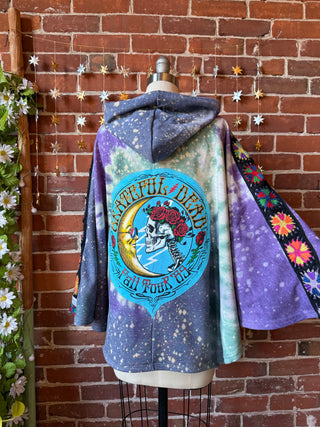 OOAK Winter Collection- Upcycled Grateful Dead Inspired Tie Dye Granny Square Hoodie Poncho