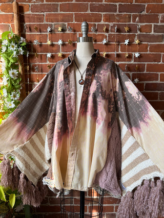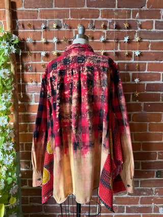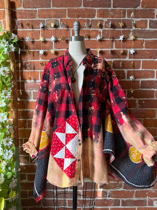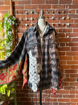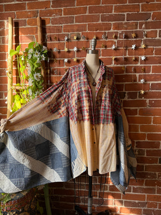 OOAK Winter Collection- Birdsong Vintage Patchwork + Bleach Plaid Button Up Wing Style Poncho Jacket
