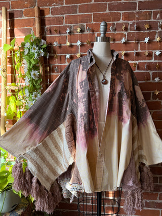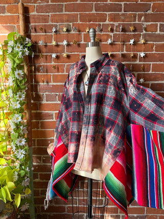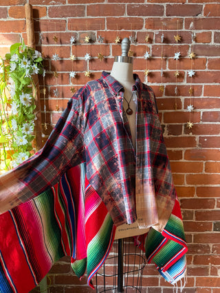 OOAK Winter Collection- Birdsong Rainbow Blanket + Bleach Plaid Button Up Wing Style Poncho Jacket