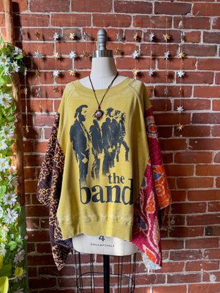 OOAK Winter Collection- Upcycled The Band Inspired Kantha Poncho Sweatshirt