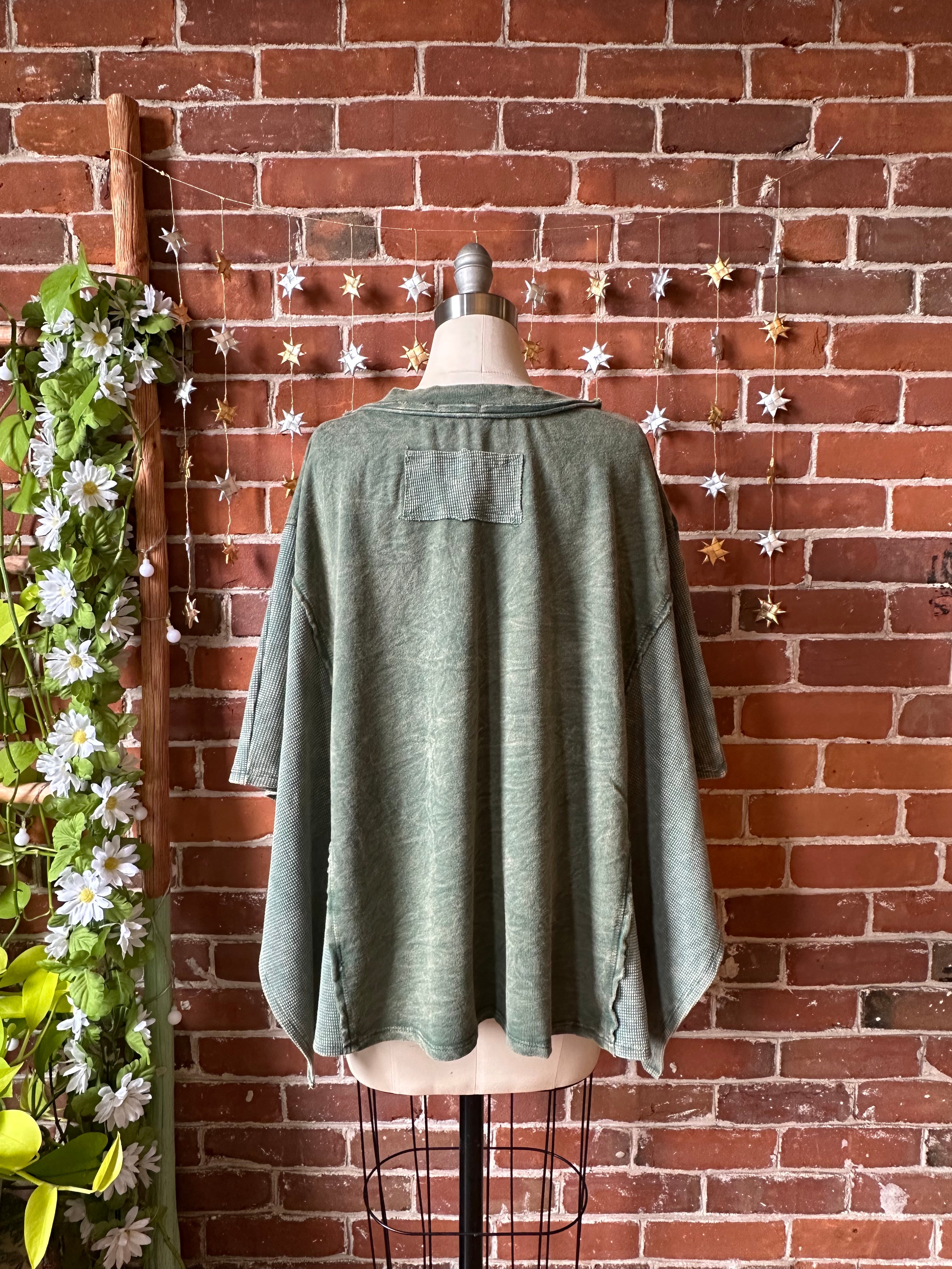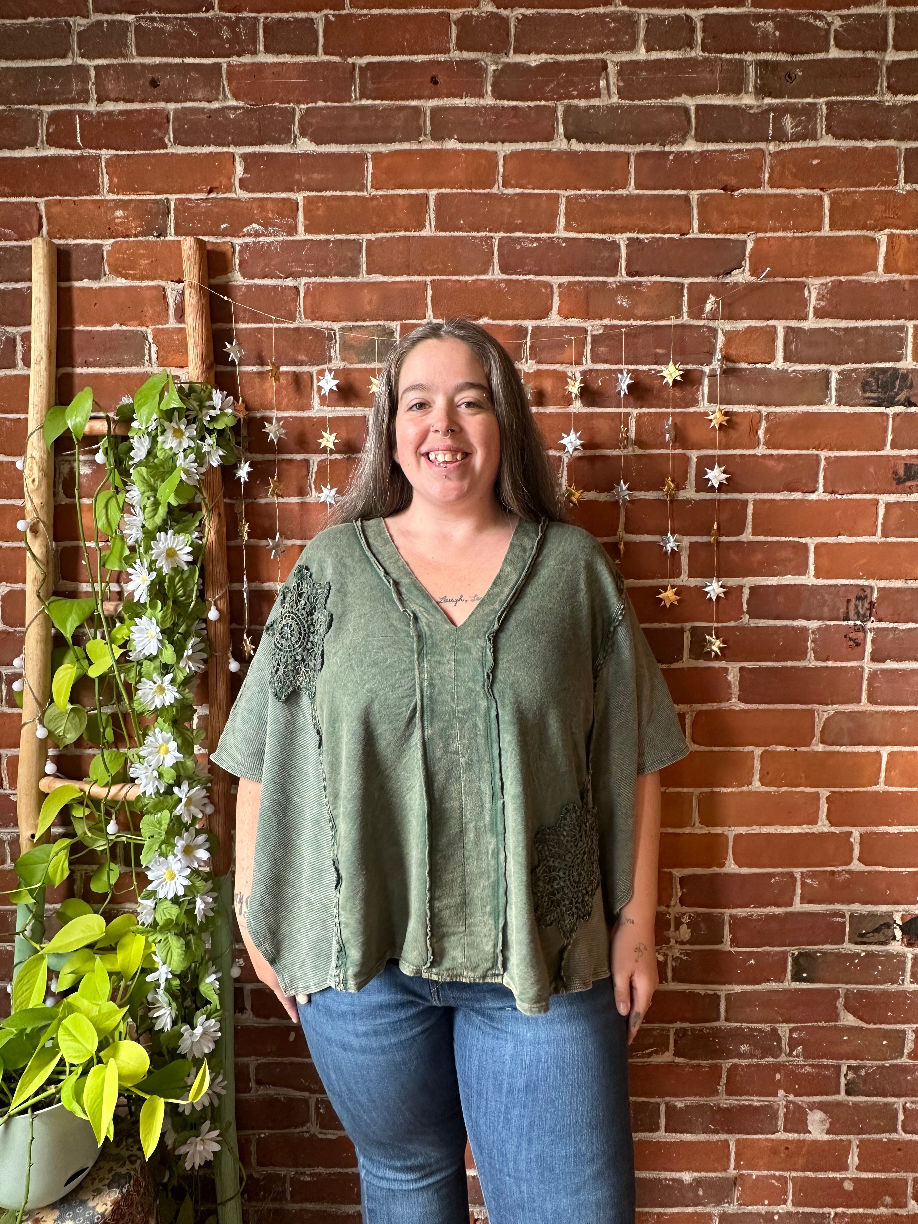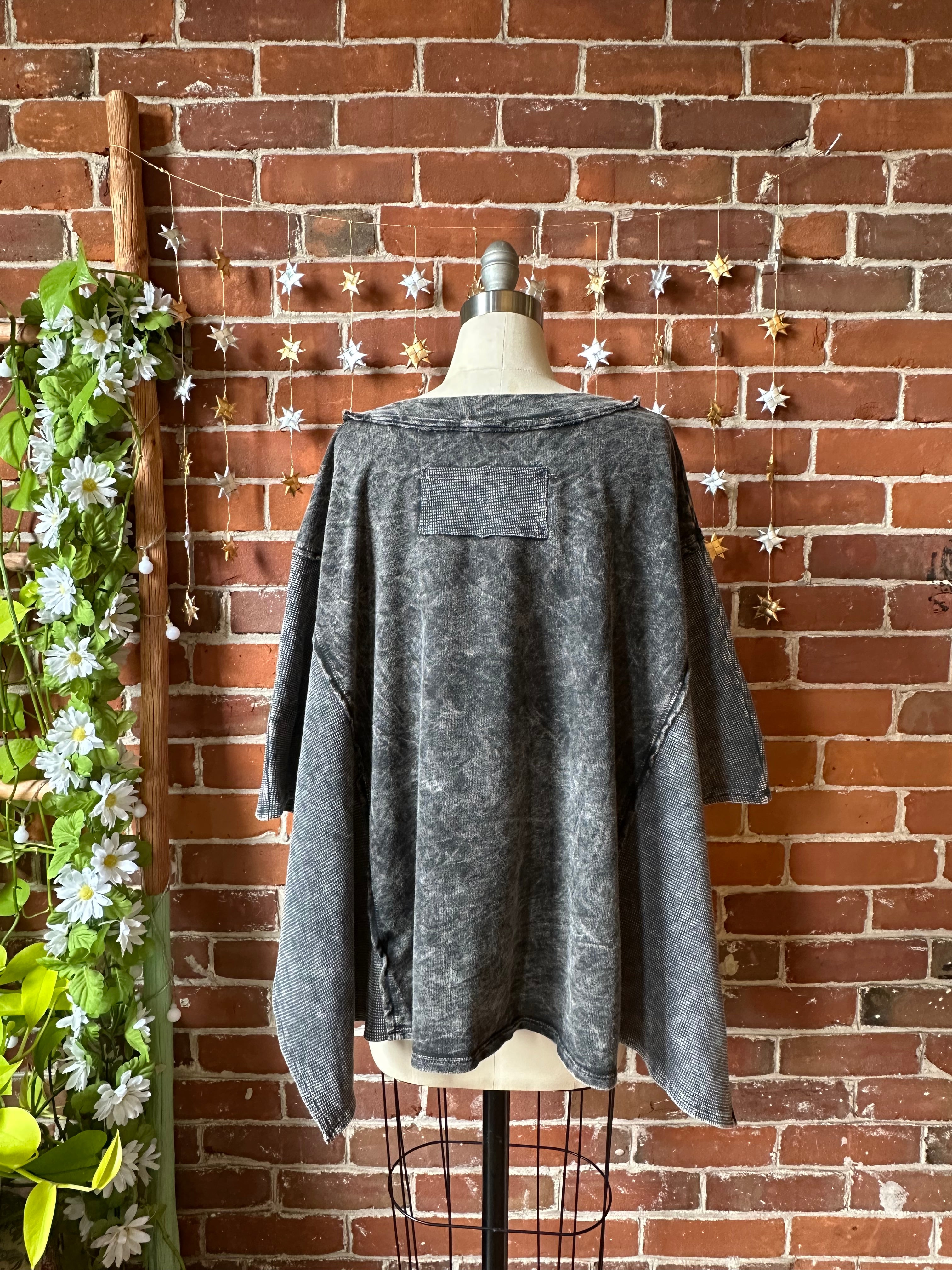 In Zen Mode Doily V-Neck Poncho Top - In Charcoal + Olive