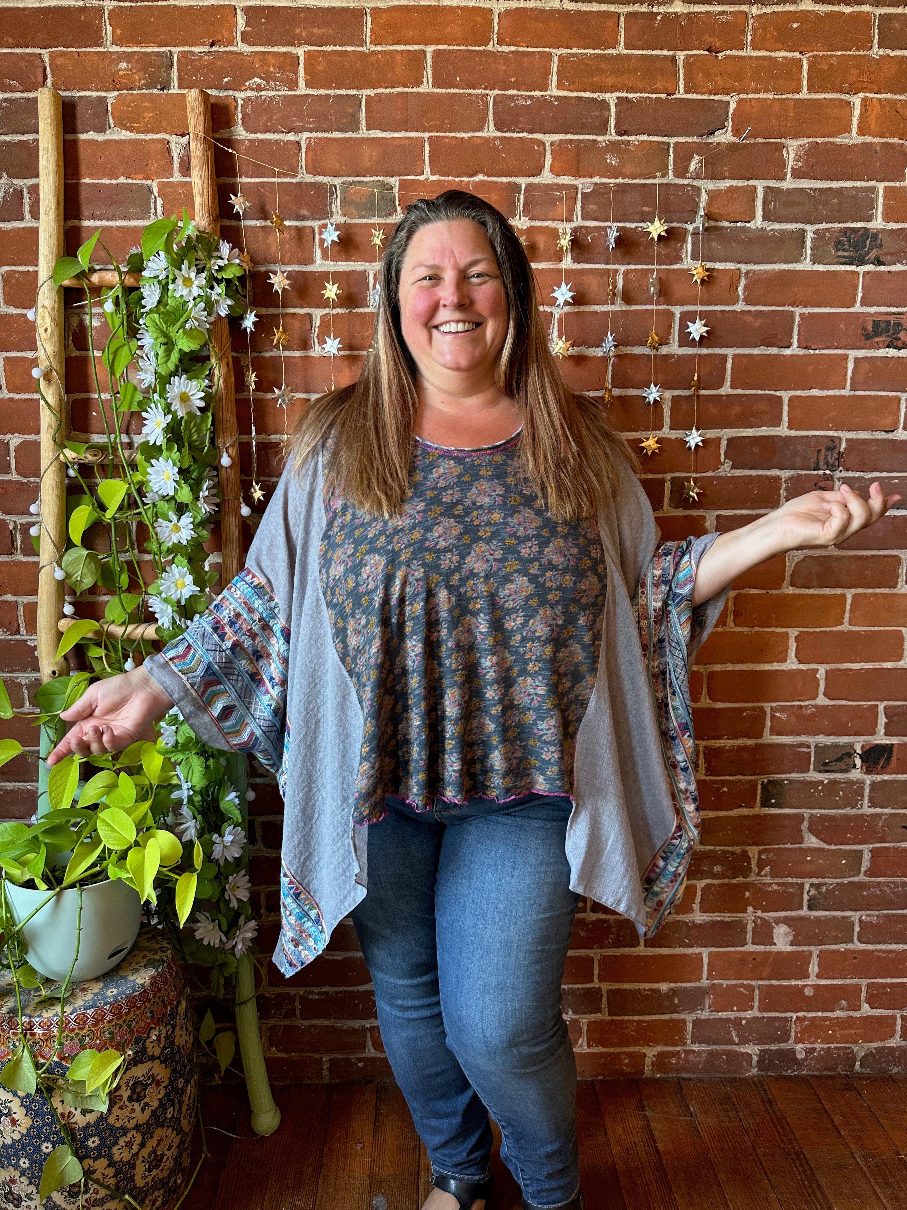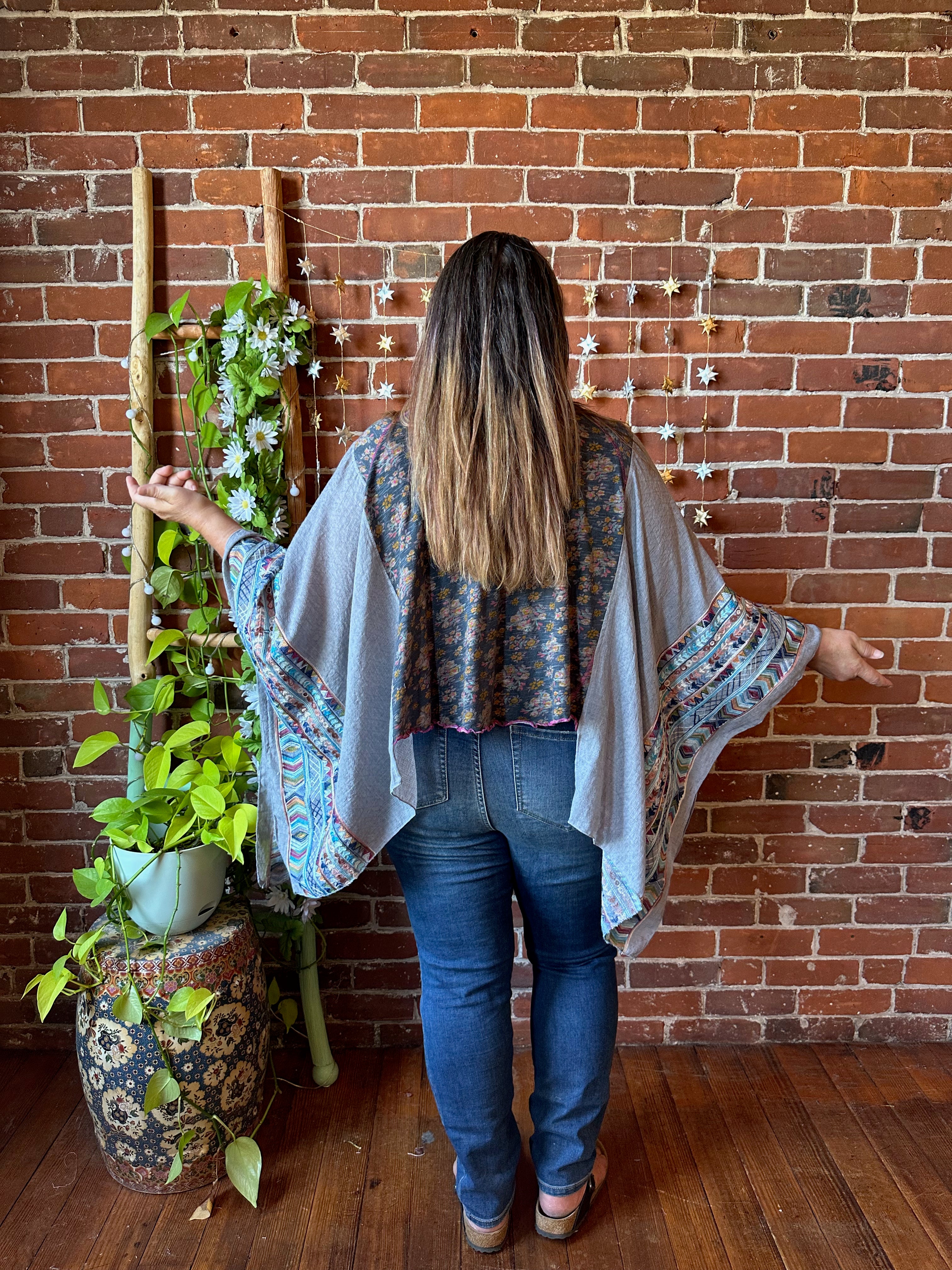 OOAK Autumn Collection - Upcycled Boho Floral Embroidered Poncho Top