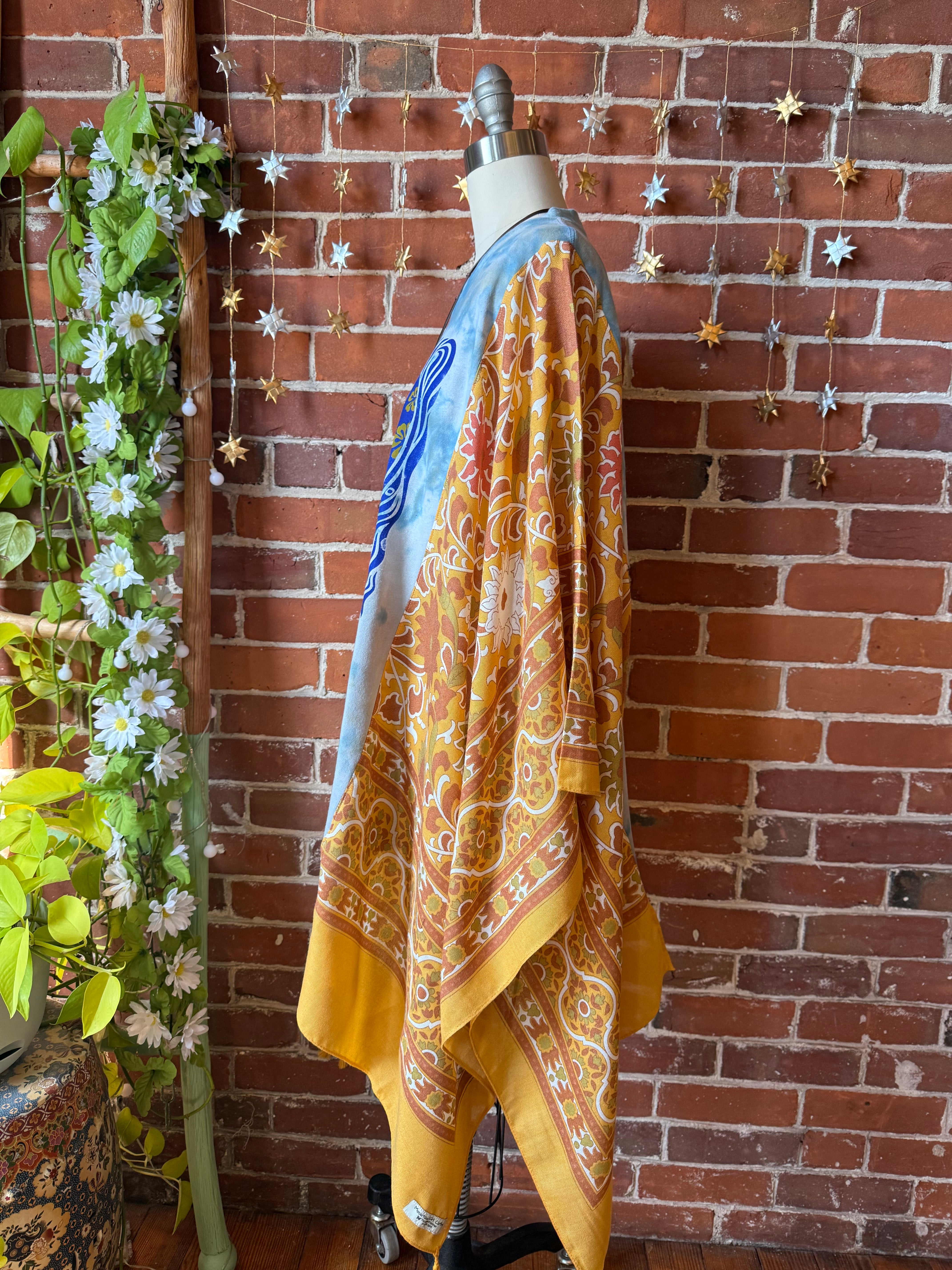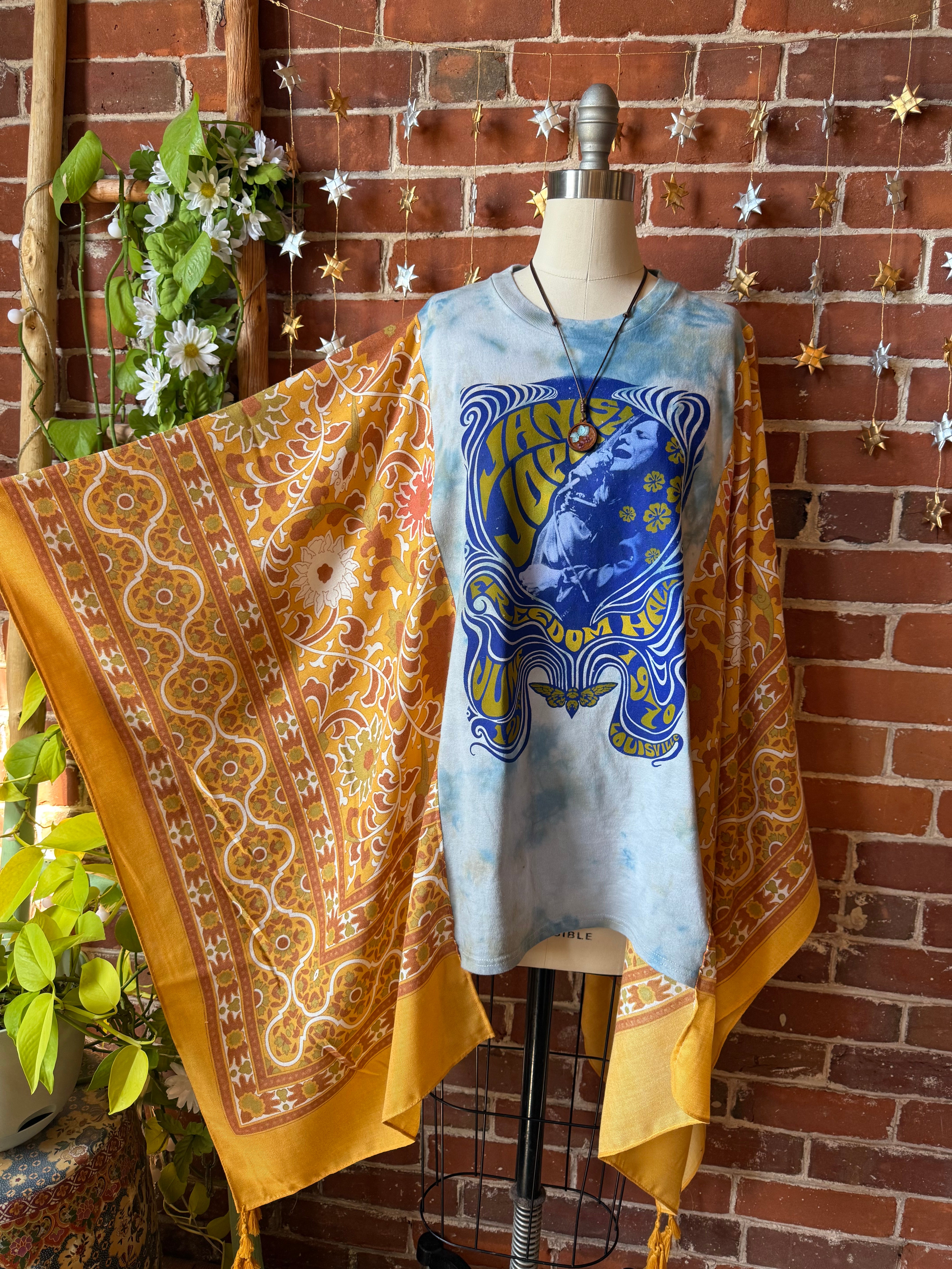 Say Hello to Boho in this unique flowy tshirt top. Made from an upcycled tshirt and featuring soft, flowy fabric sides in a botanical print. Perfect for concerts or everyday wear.
