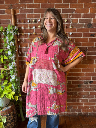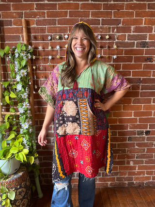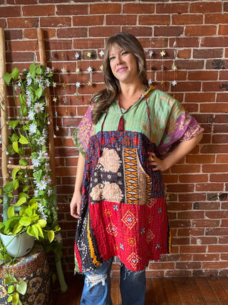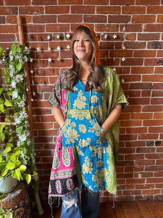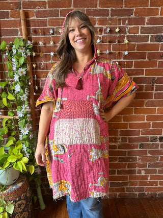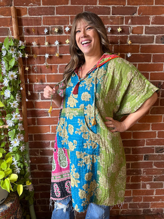OOAK Autumn Collection- Upcycled Organic Cotton + Kantha Poncho Hi lo Hoodie