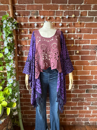 Upcycled Crochet Hi Lo Flowy Poncho Top
