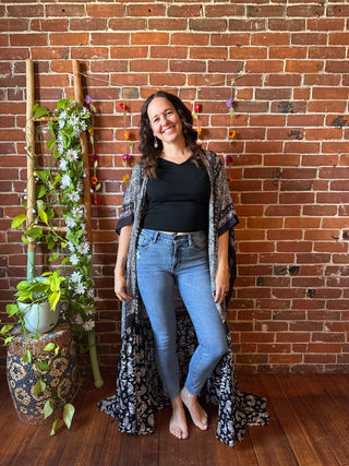 Earth Goddess Bell Sleeve Embroidered Patchwork Kimono Jacket Small-3X