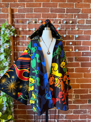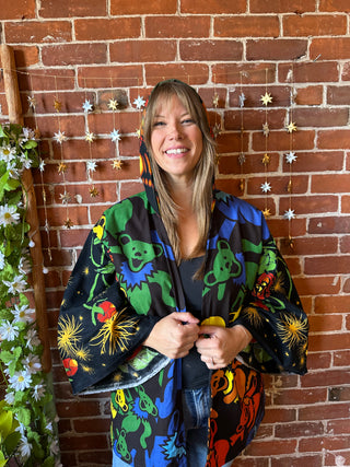 OOAK Autumn Collection - Upcycled Grateful Dead Inspired Mix Fabric Bell Sleeve Robe