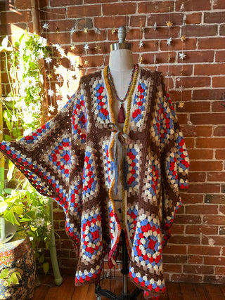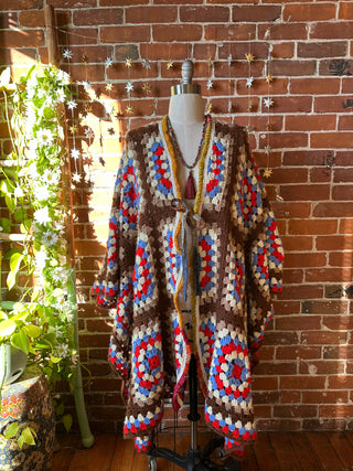 Grateful Dead Inspired Upcycled Mandala Long Tapestry Robe Kimono with Pockets and Belt