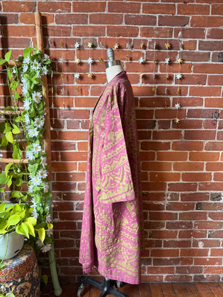 Gold + Dark Mauve Mandala Long Tapestry Robe Kimono with Pockets and Belt - Fair Trade Made